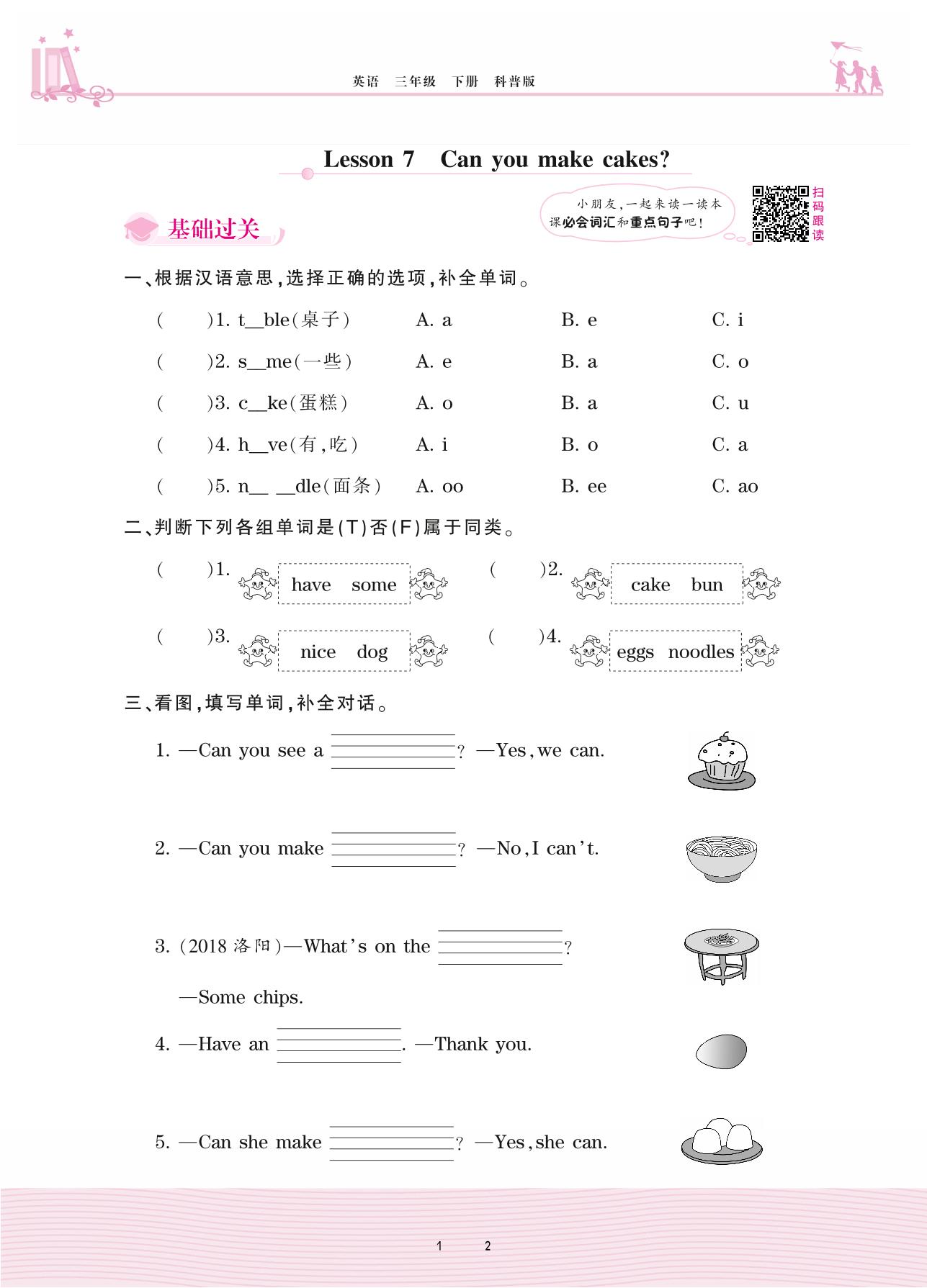 2021下册三年级英语科普版 Lesson 7 Can you make cakes?