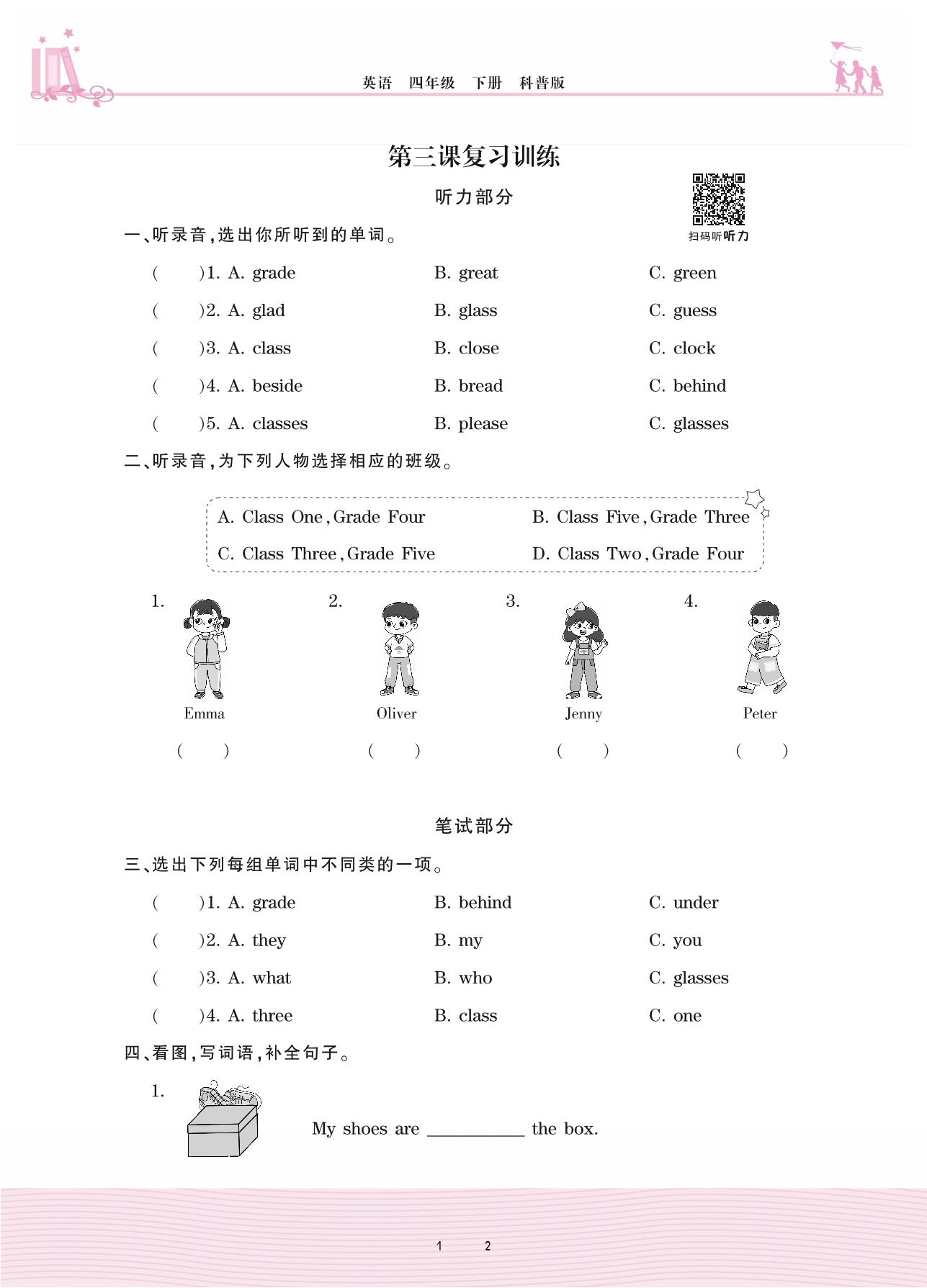 2021下册四年级英语科普版 第三课复习训练