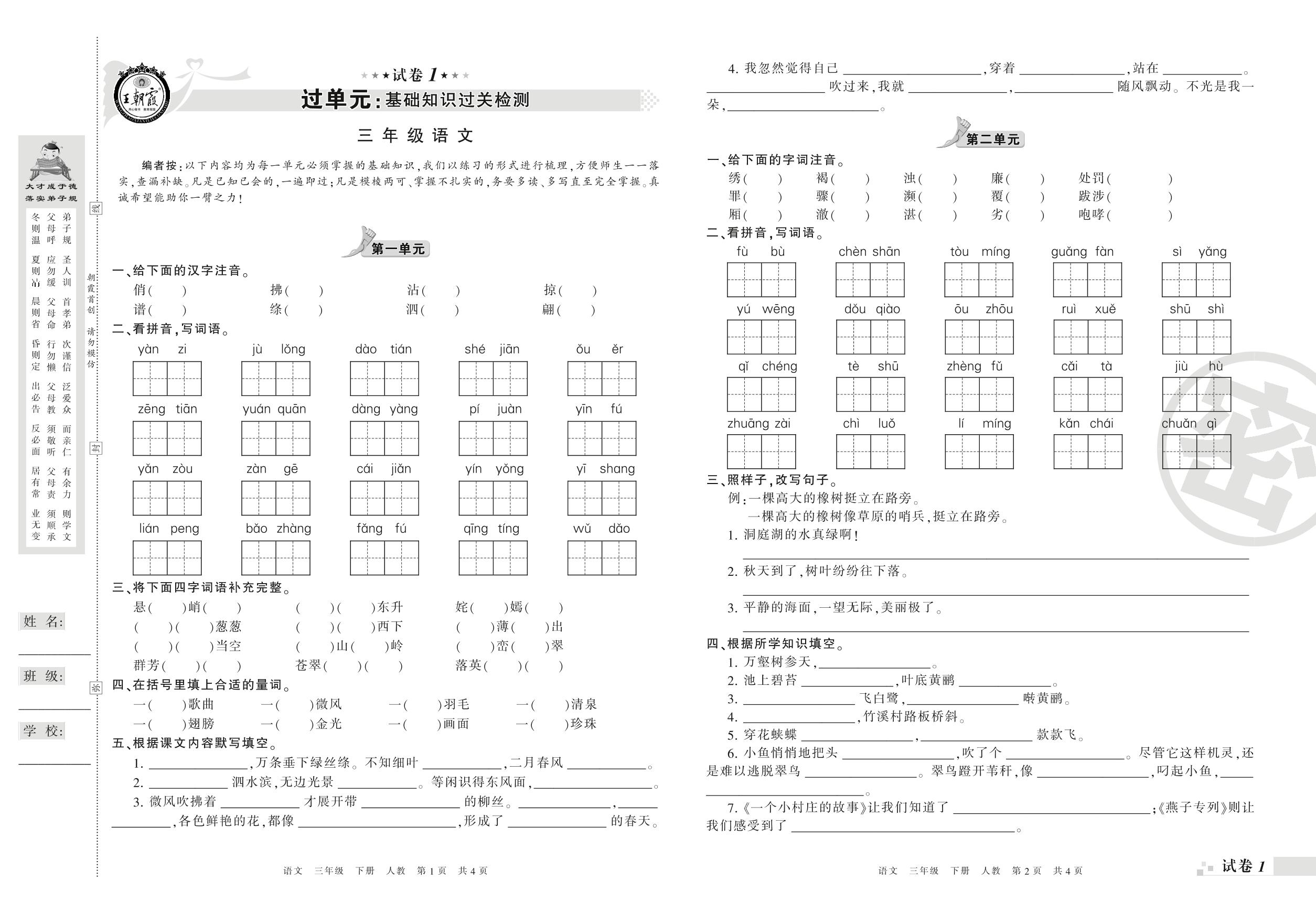 王朝霞期末过单元三年级下册语文(人教版)_R210801104253【1】