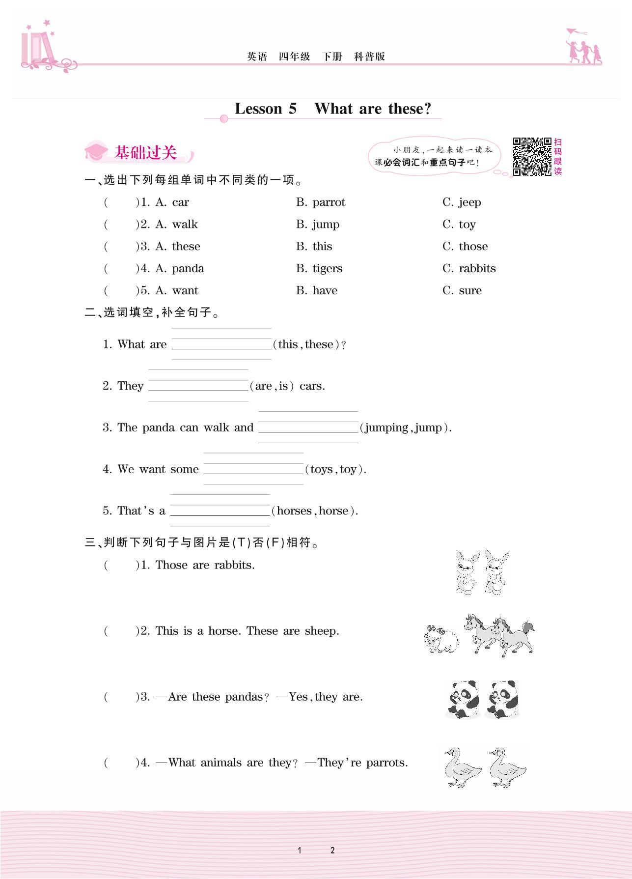 2021下册四年级英语科普版 Lesson 5 What are these?