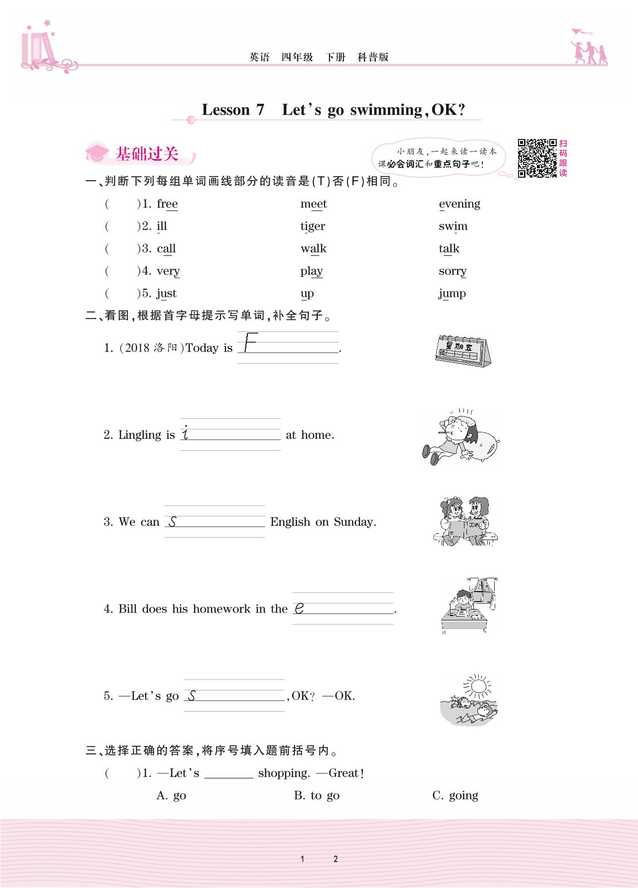 2021下册四年级英语科普版 Lesson 7 Let’s go swimming,OK?