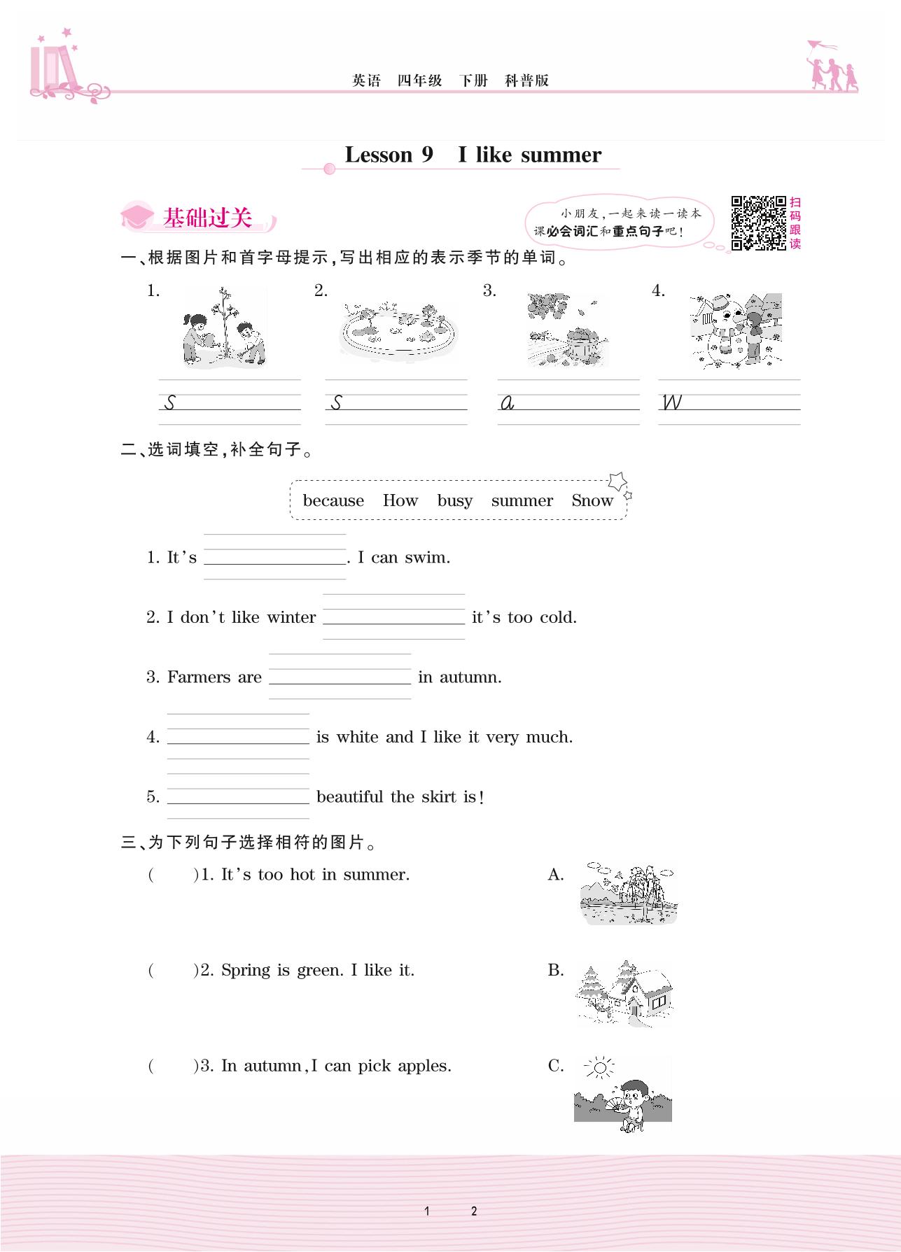 2021下册四年级英语科普版 Lesson 9 I like summer