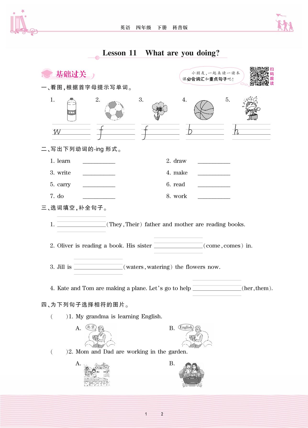 2021下册四年级英语科普版 Lesson 11 What are you doing?