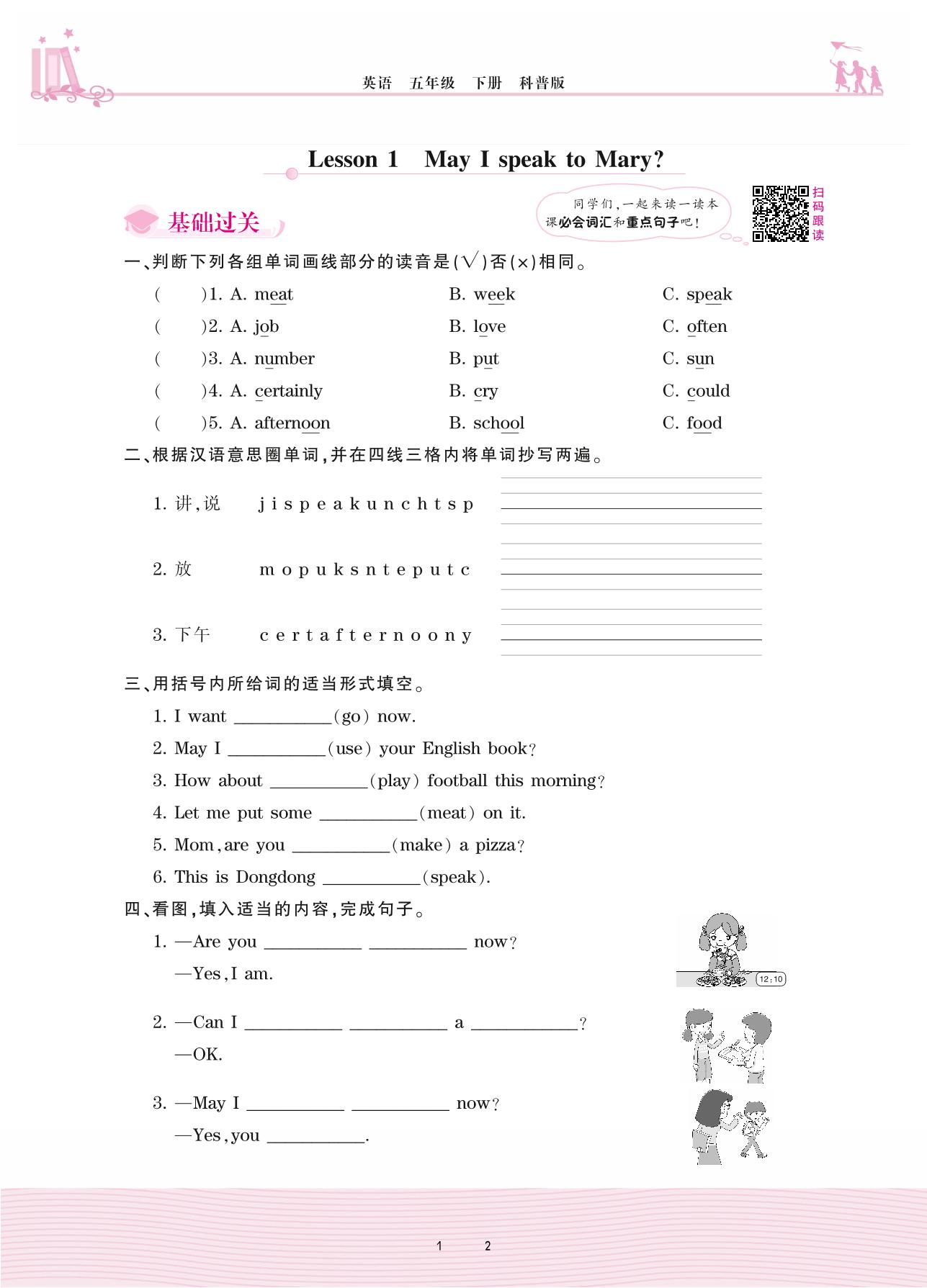 2021下册五年级英语科普版 Lesson 1 May I speak to Mary?