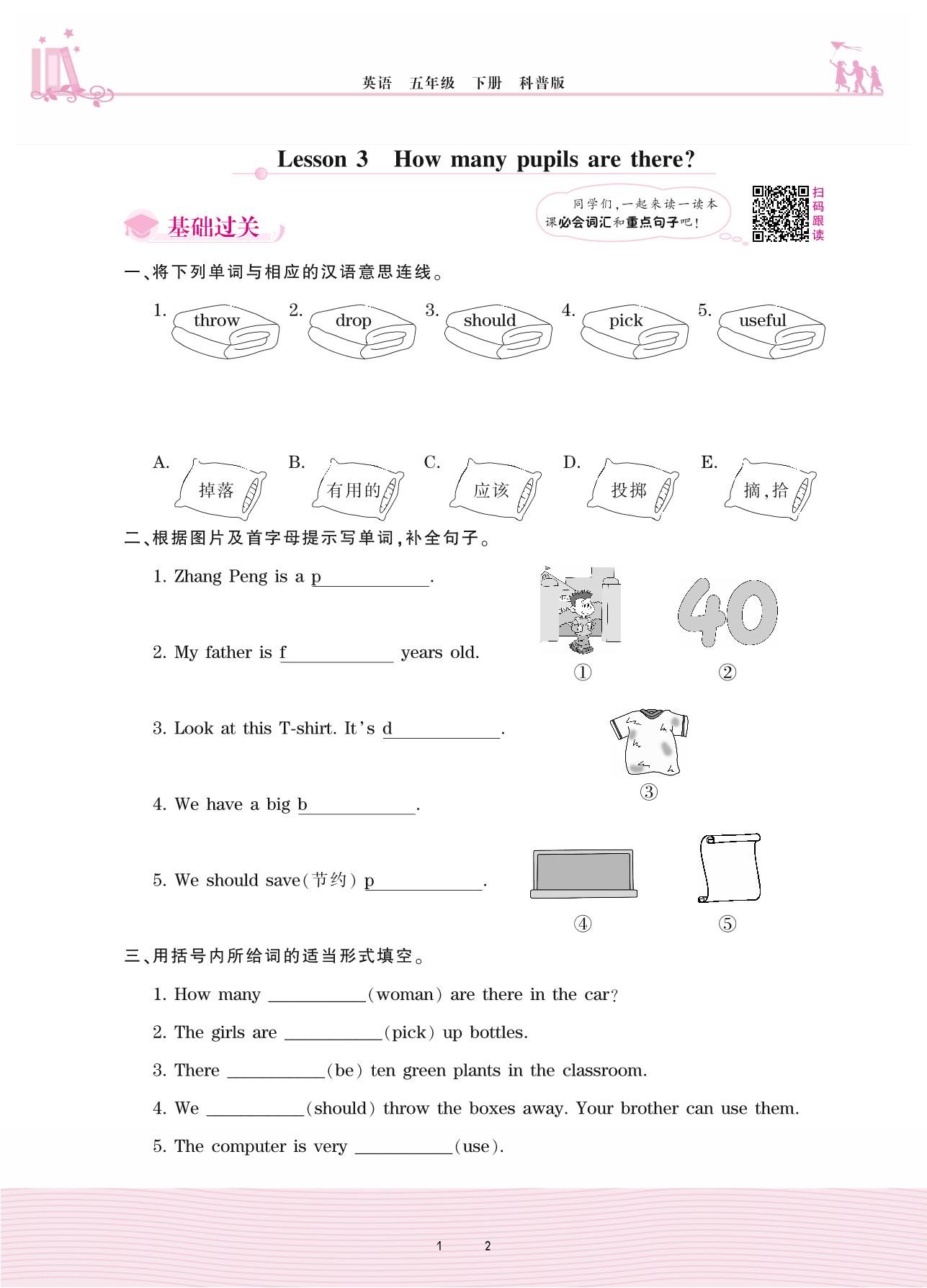 2021下册五年级英语科普版 Lesson 3 How many pupils are there?