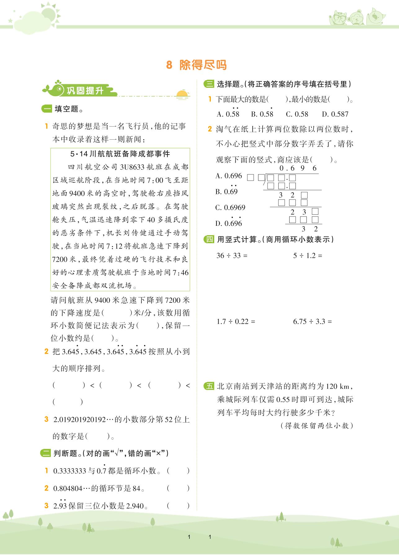 2020上册五年级数学北师版 第一单元 小数除法——8 除得尽吗