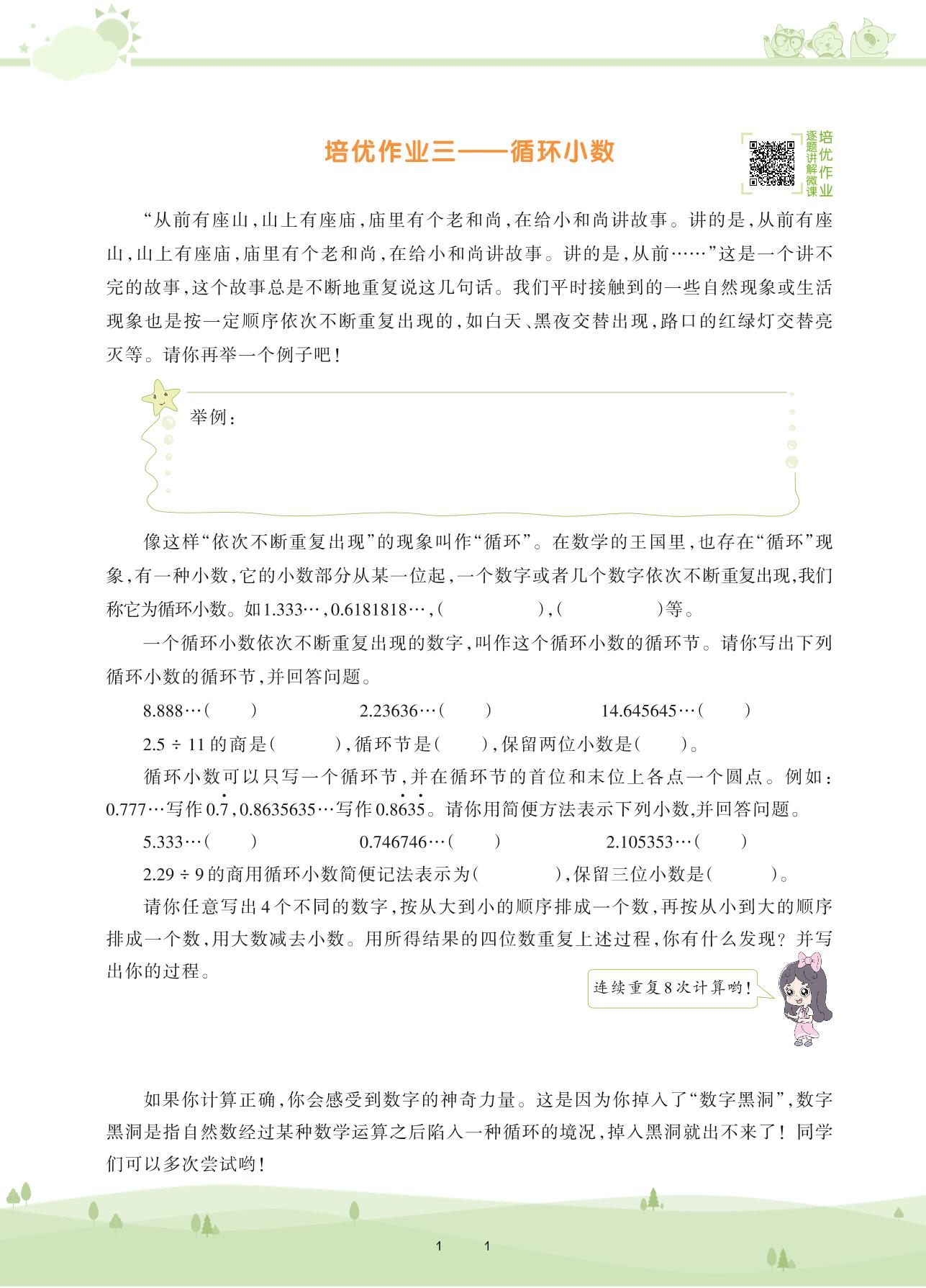 2020上册五年级数学北师版 第一单元 小数除法——培优作业三 循环小数