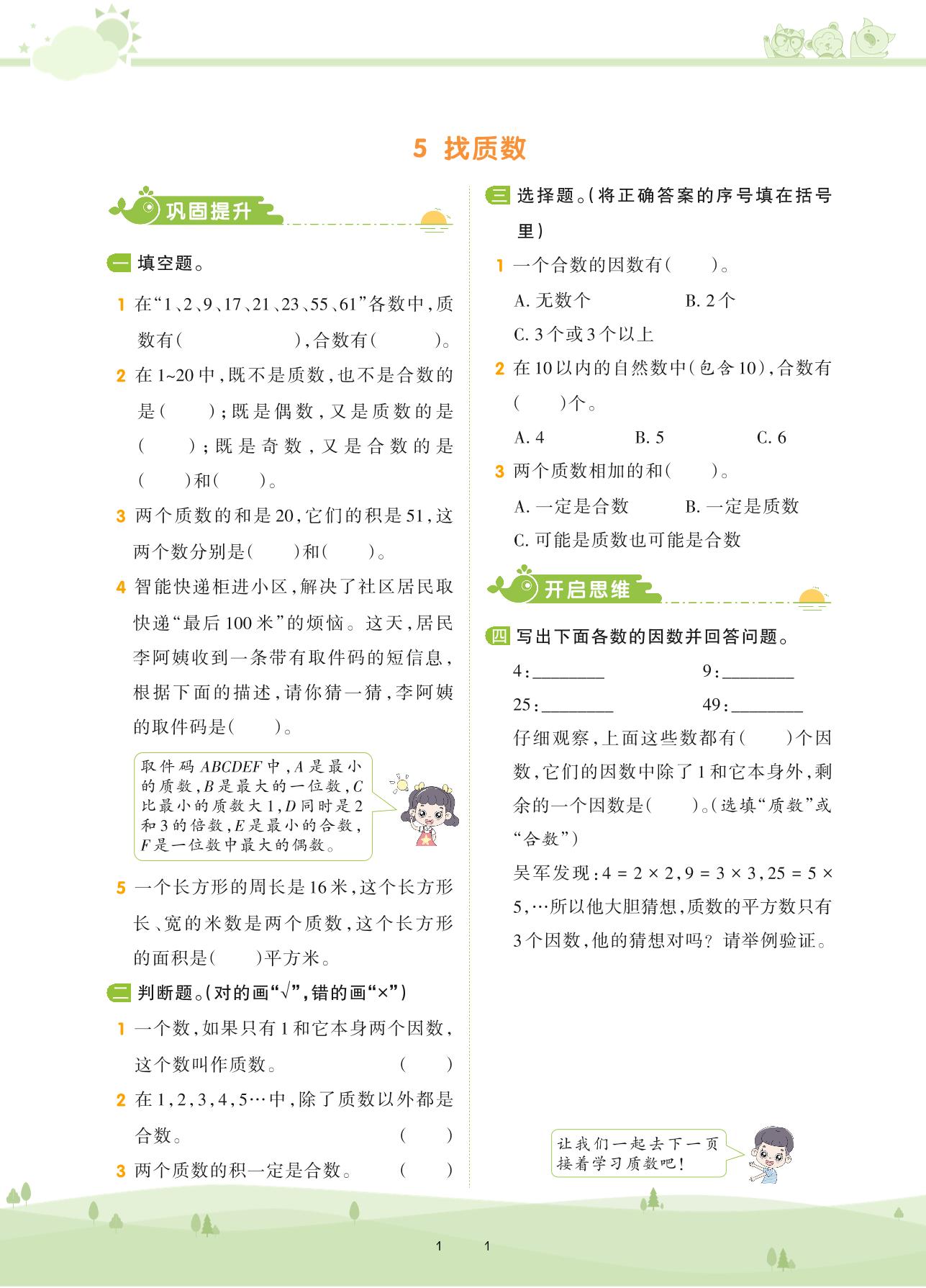 2020上册五年级数学北师版 第三单元 倍数与因数——5 找质数