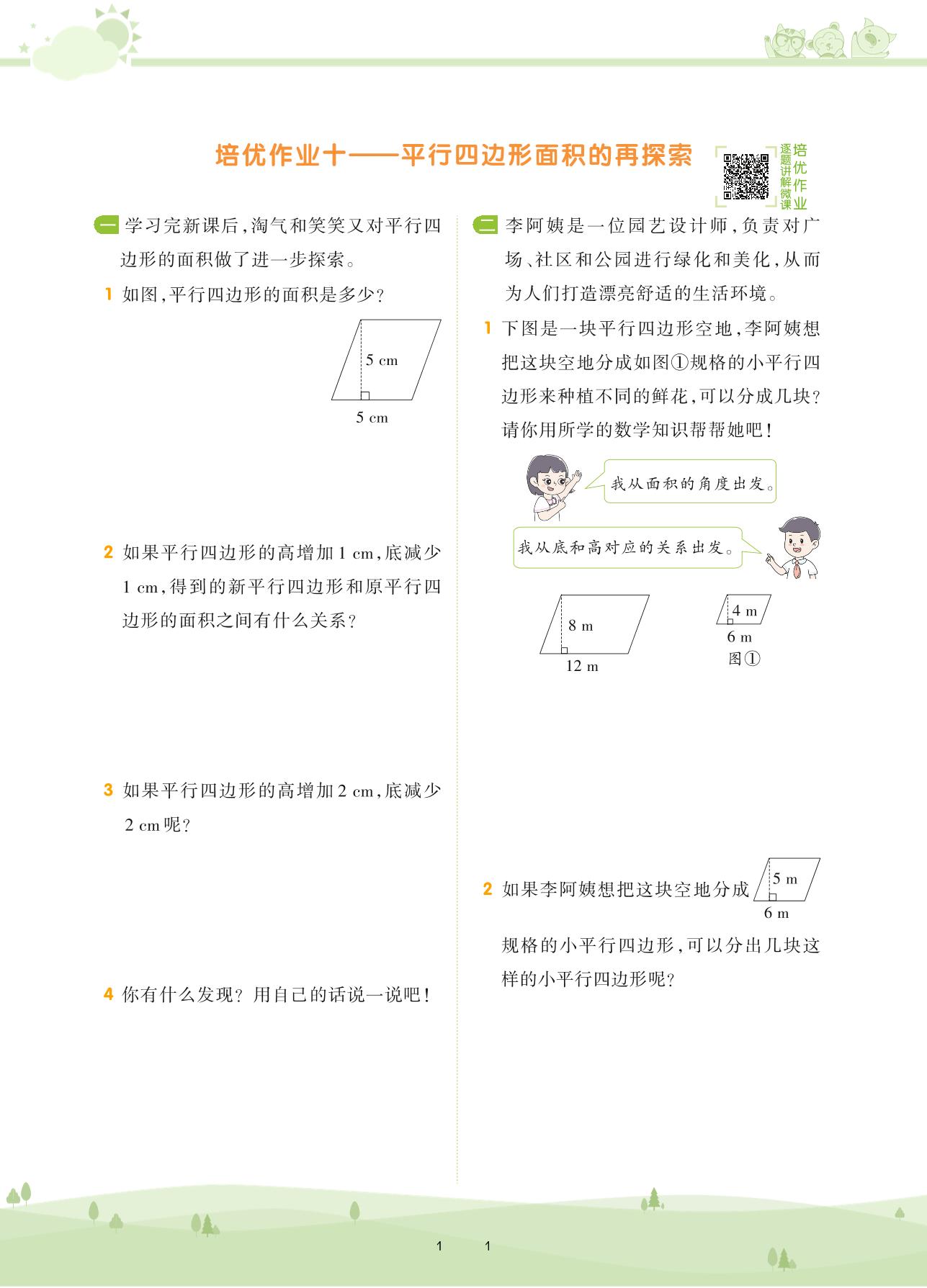 2020上册五年级数学北师版 第四单元 多边形的面积——培优作业十 平行四边形面积的再探索