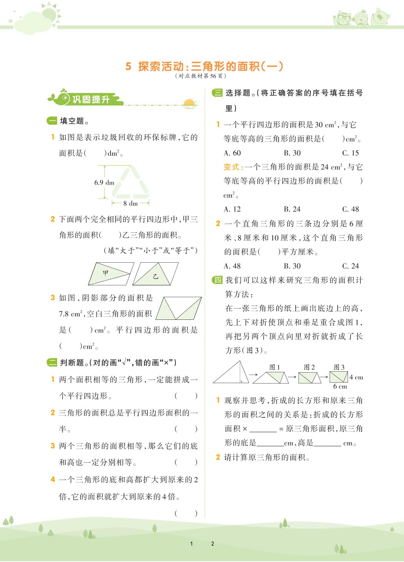 2020上册五年级数学北师版 第四单元 多边形的面积——5 探索活动:三角形的面积(一)