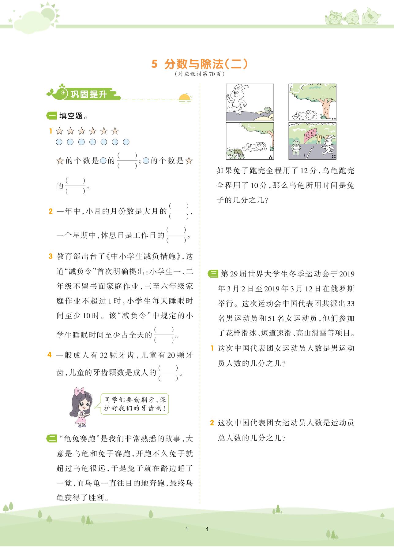 2020上册五年级数学北师版 第五单元 分数的意义——5 分数与除法(二)