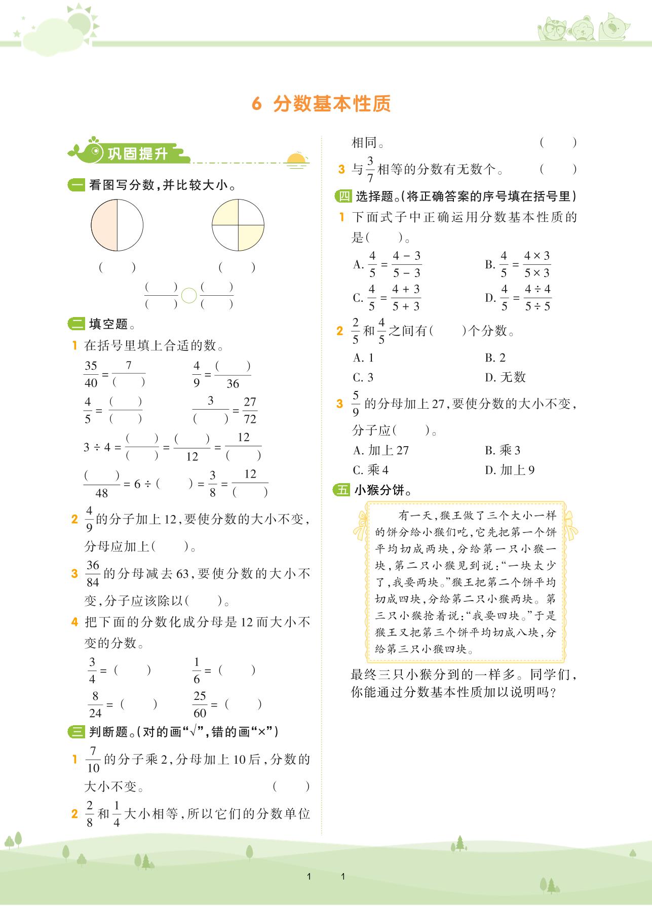 2020上册五年级数学北师版 第五单元 分数的意义——6 分数基本性质