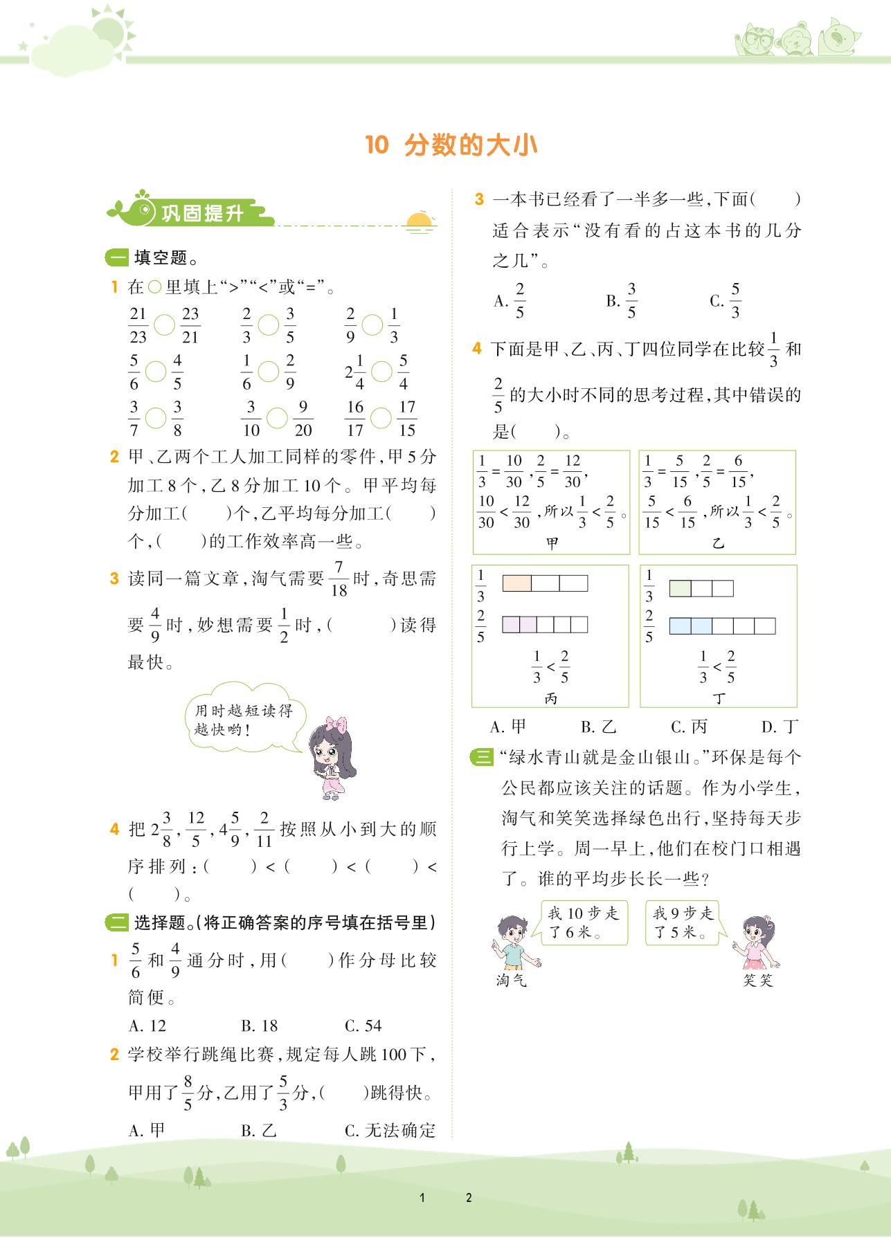 2020上册五年级数学北师版 第五单元 分数的意义——10 分数的大小