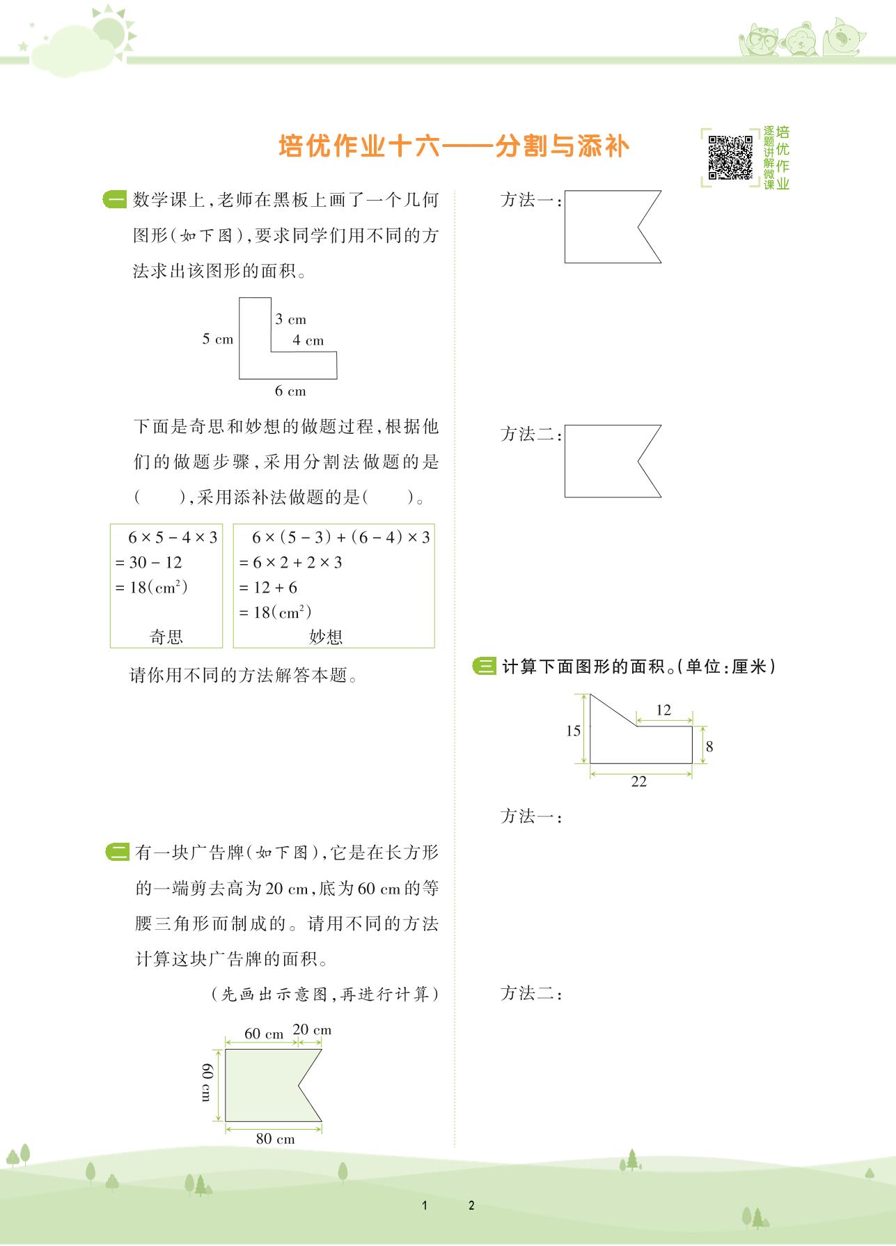 2020上册五年级数学北师版 第六单元 组合图形的面积——培优作业十六 分割与添补