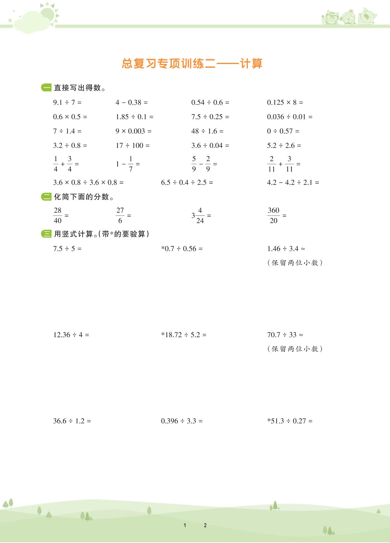 2020上册五年级数学北师版 总复习——计算