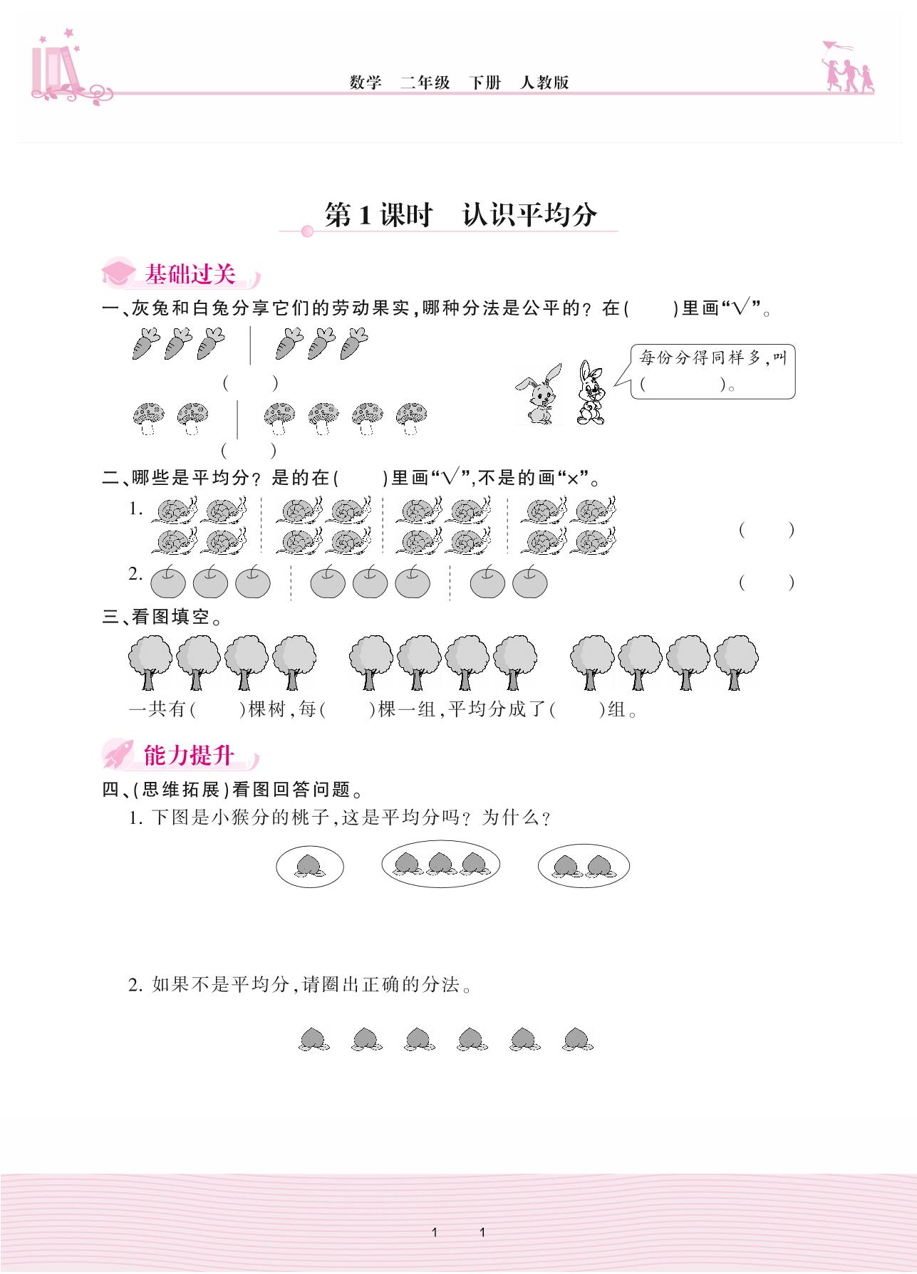 2021下册二年级数学人教版 2 表内除法(一)——第1课时 认识平均分