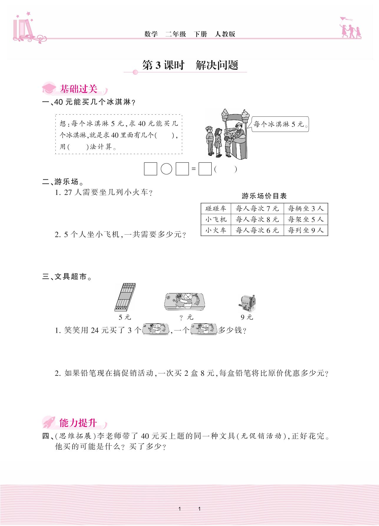 2021下册二年级数学人教版 4 表内除法(二)——第3课时 解决问题