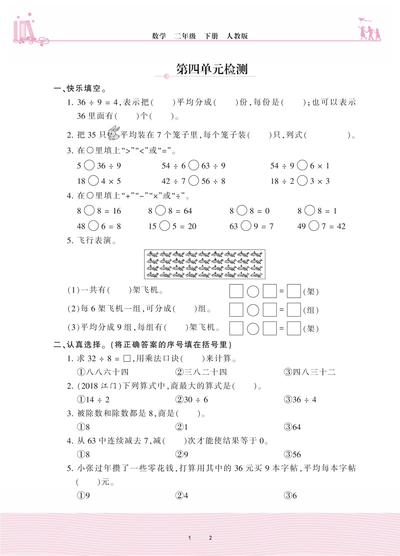 2021下册二年级数学人教版 4 表内除法(二)——第四单元检测