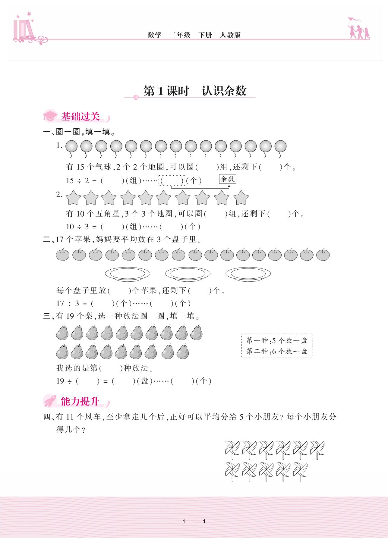 2021下册二年级数学人教版 6 有余数的除法——第1课时 认识余数