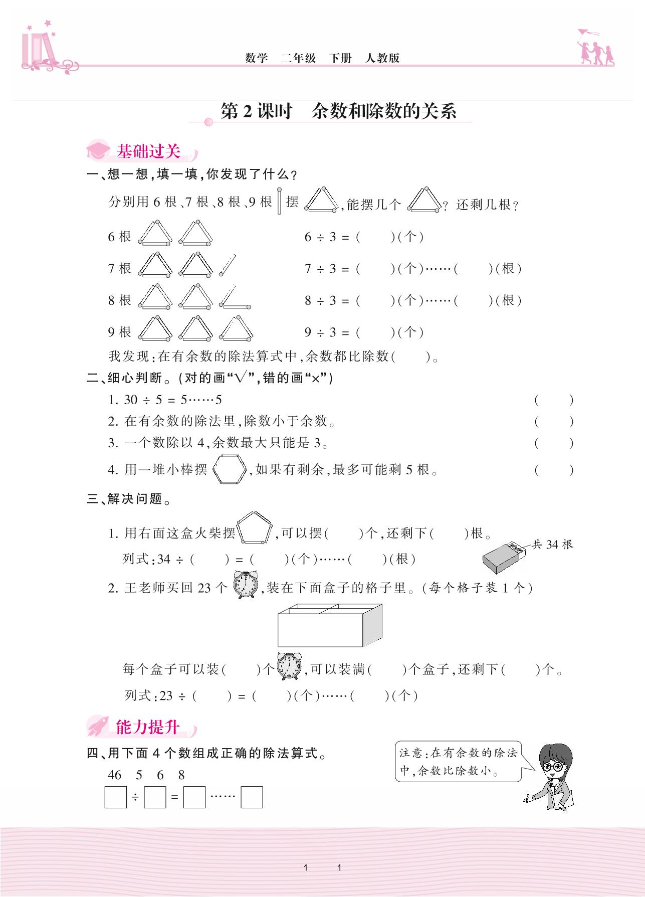 2021下册二年级数学人教版 6 有余数的除法——第2课时 余数和除数的关系