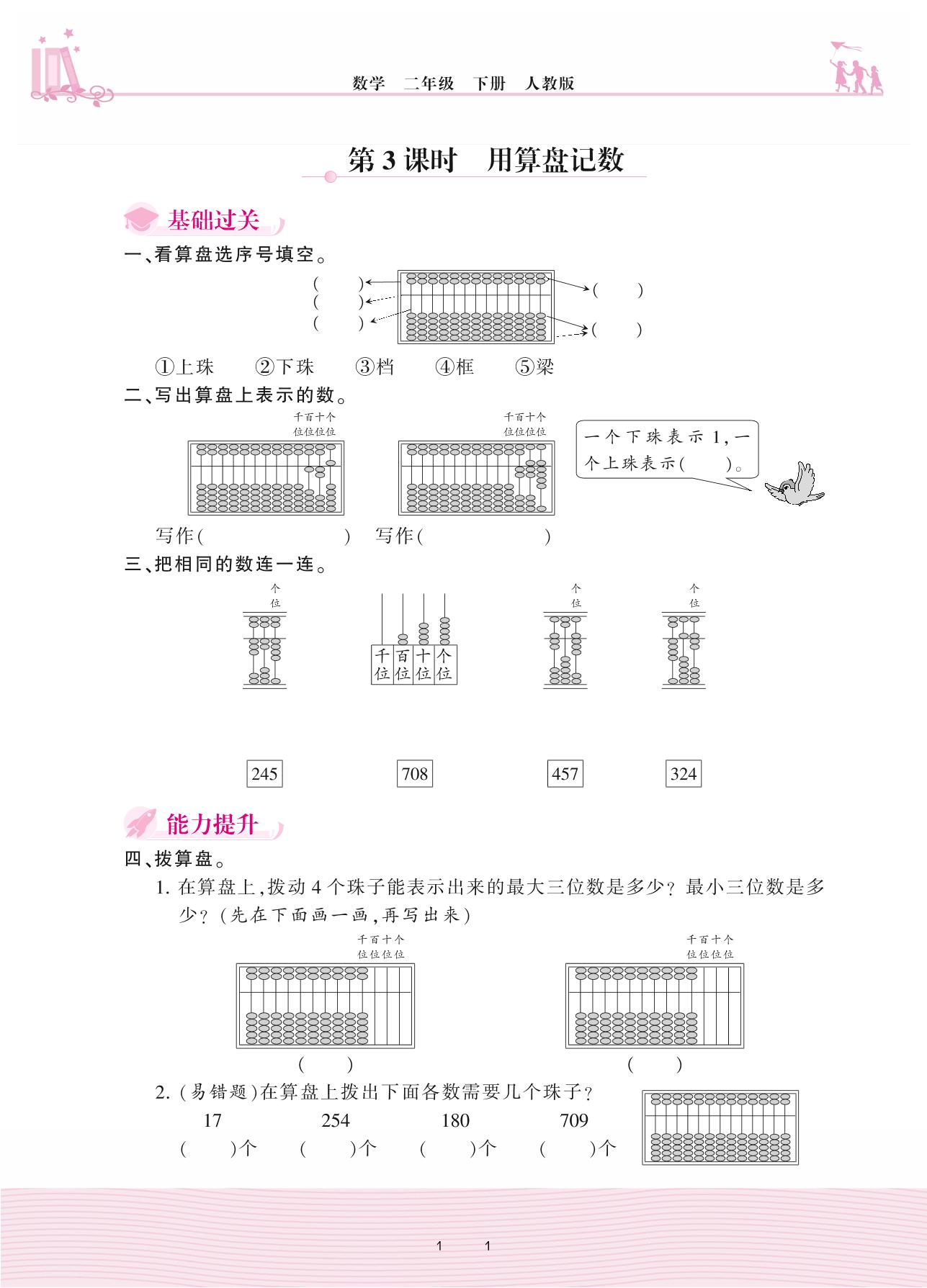 2021下册二年级数学人教版 7 万以内数的认识——第3课时 用算盘记数
