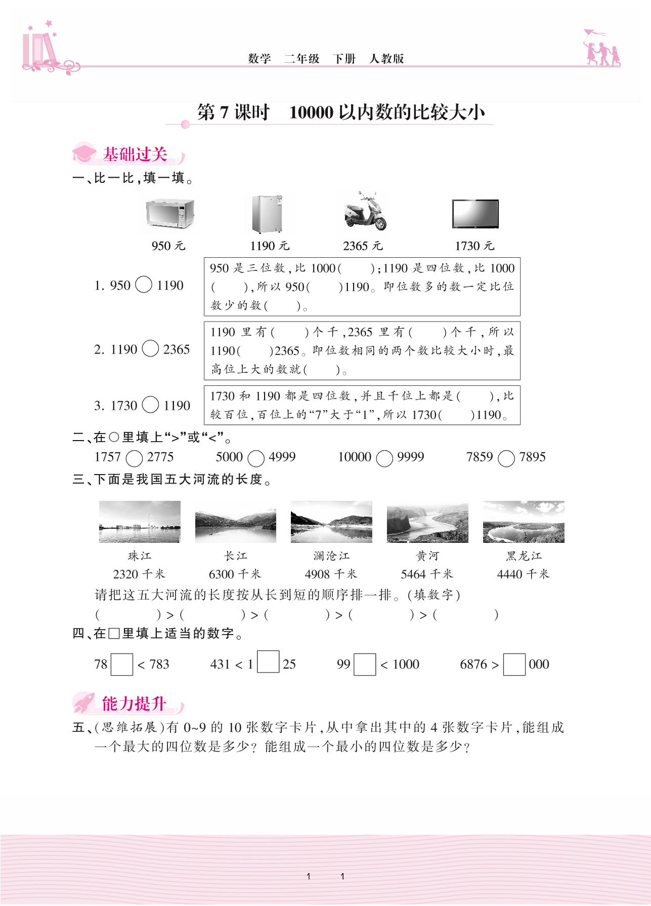 2021下册二年级数学人教版 7 万以内数的认识——第7课时 10000以内数的比较大小