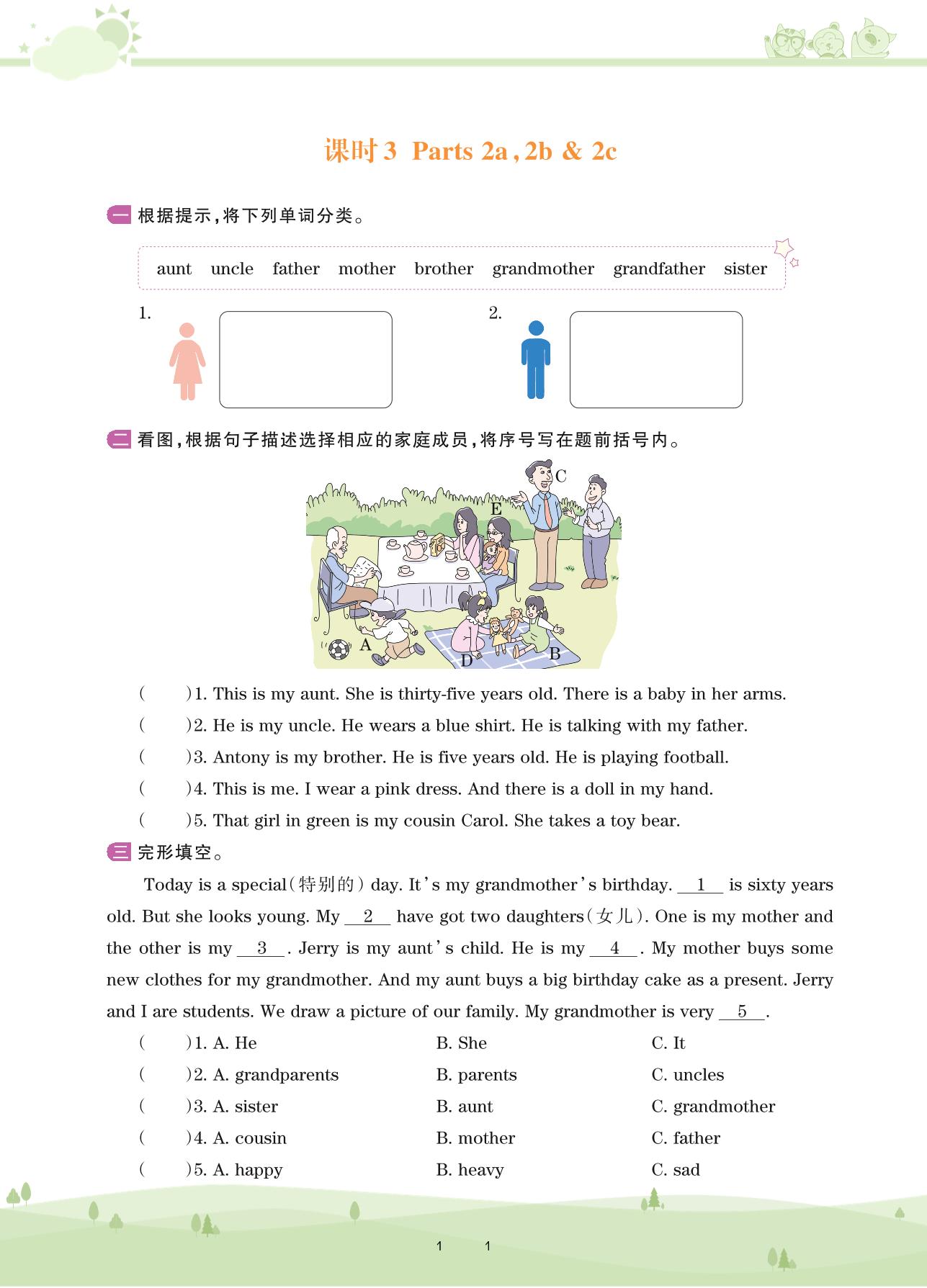 2020上册五年级英语剑桥版 Unit 1 My family——课时3 Parts 2a,2b & 2c