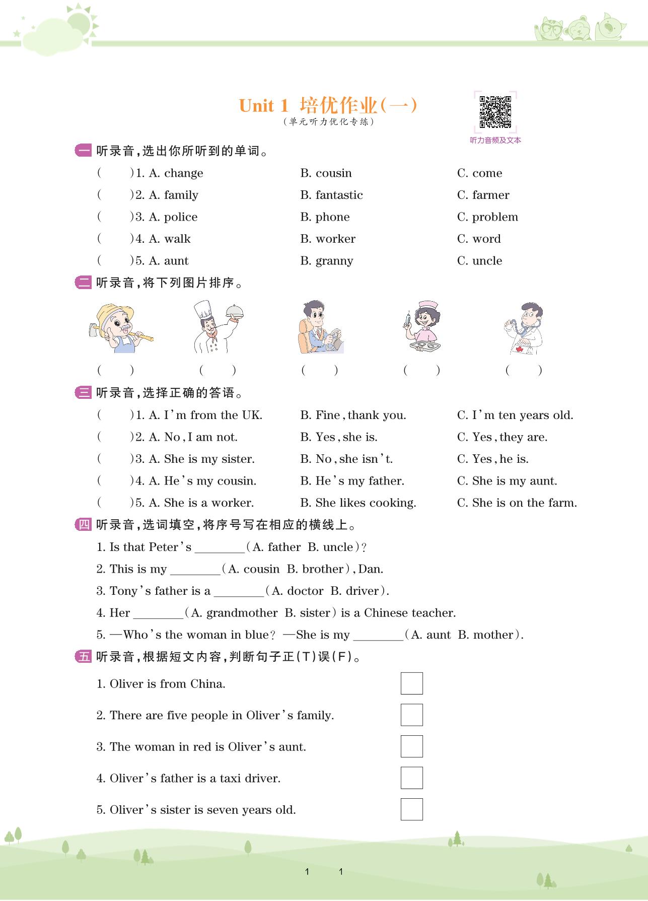 2020上册五年级英语剑桥版 Unit 1 培优作业(一)