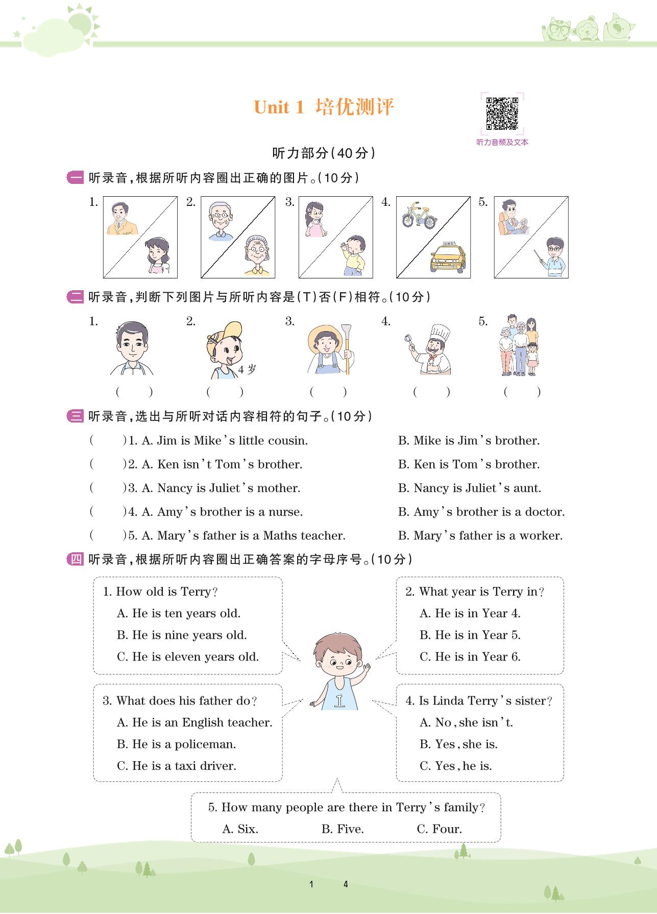 五年级英语剑桥版上册单元卷