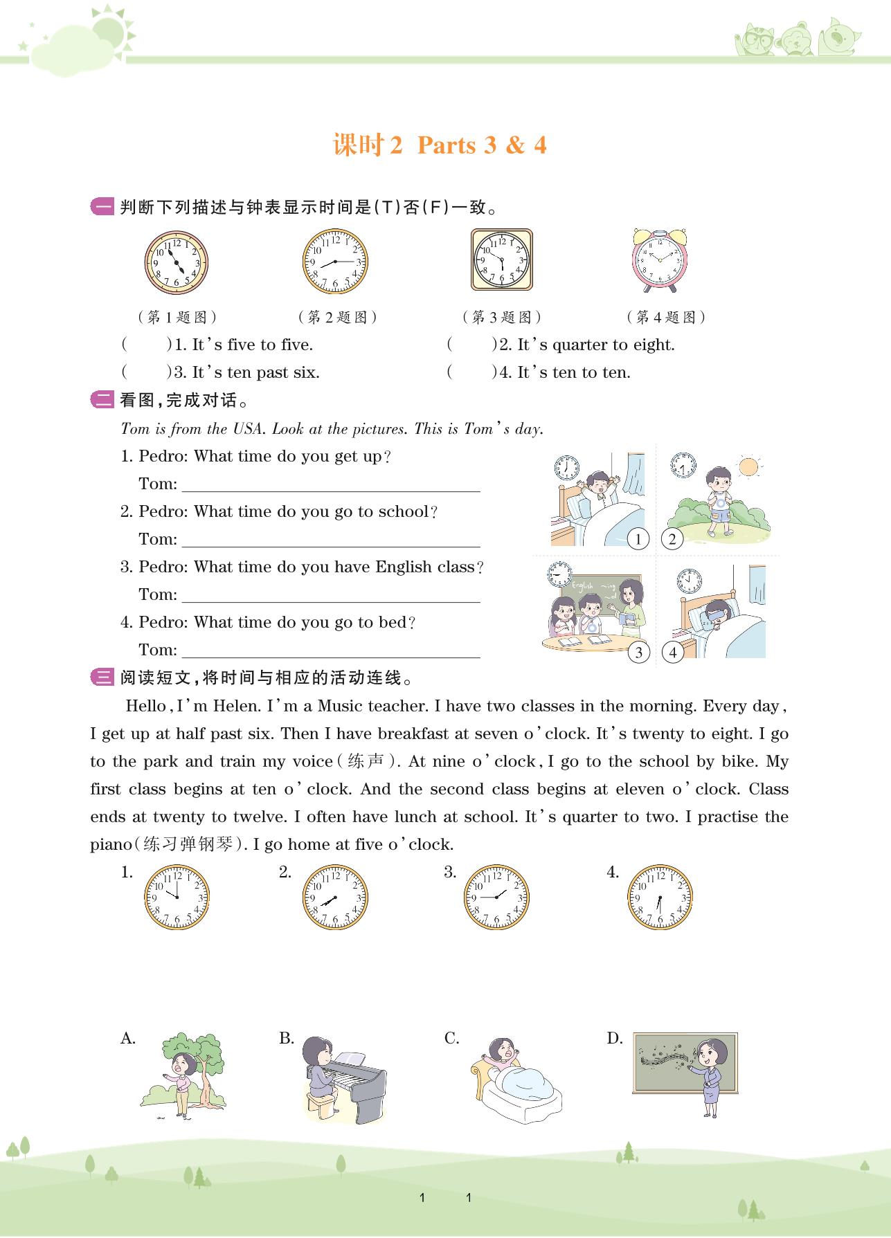 2020上册五年级英语剑桥版 Unit 3 Time——课时2 Parts 3 & 4