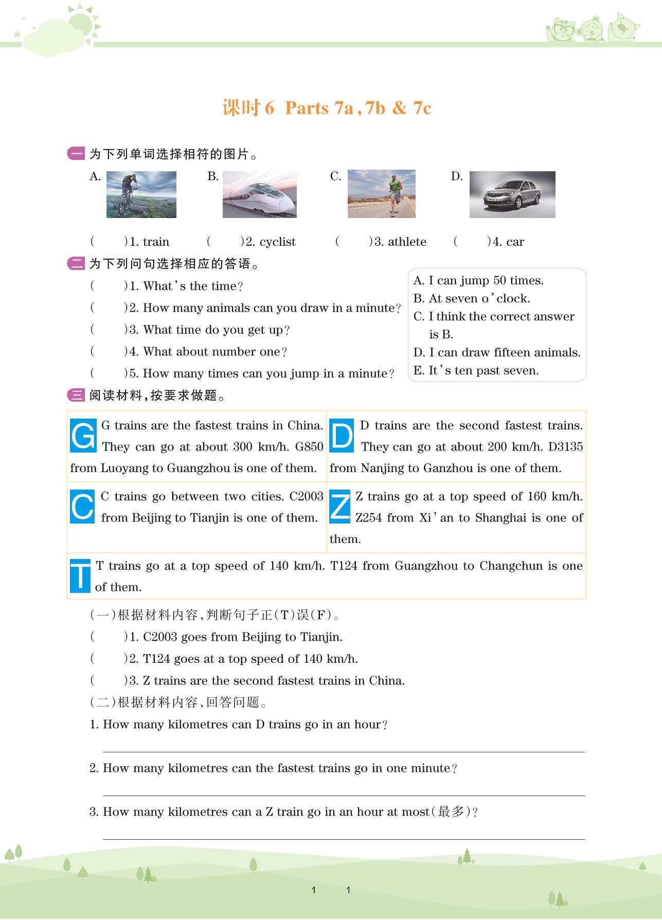 2020上册五年级英语剑桥版 Unit 3 Time——课时6 Parts 7a,7b & 7c