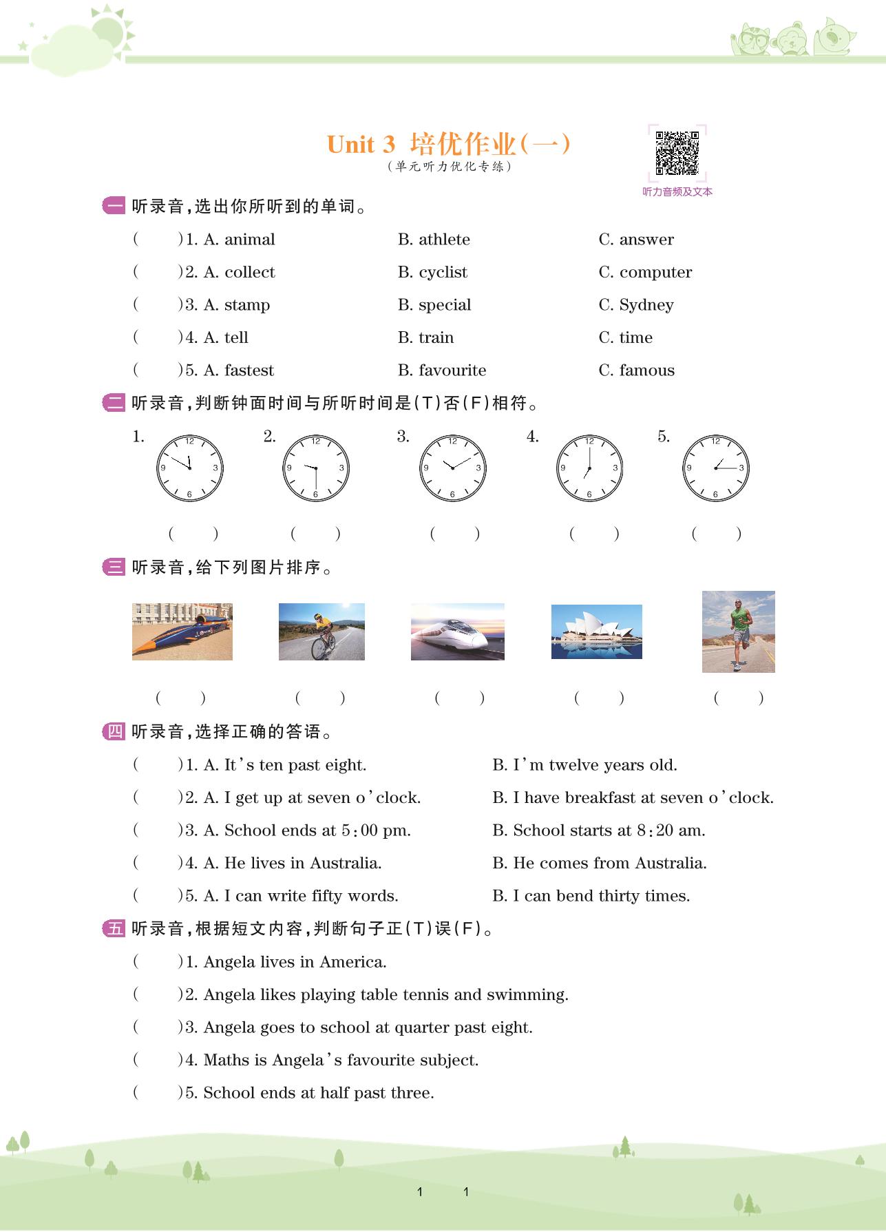 2020上册五年级英语剑桥版 Unit 3 培优作业(一)