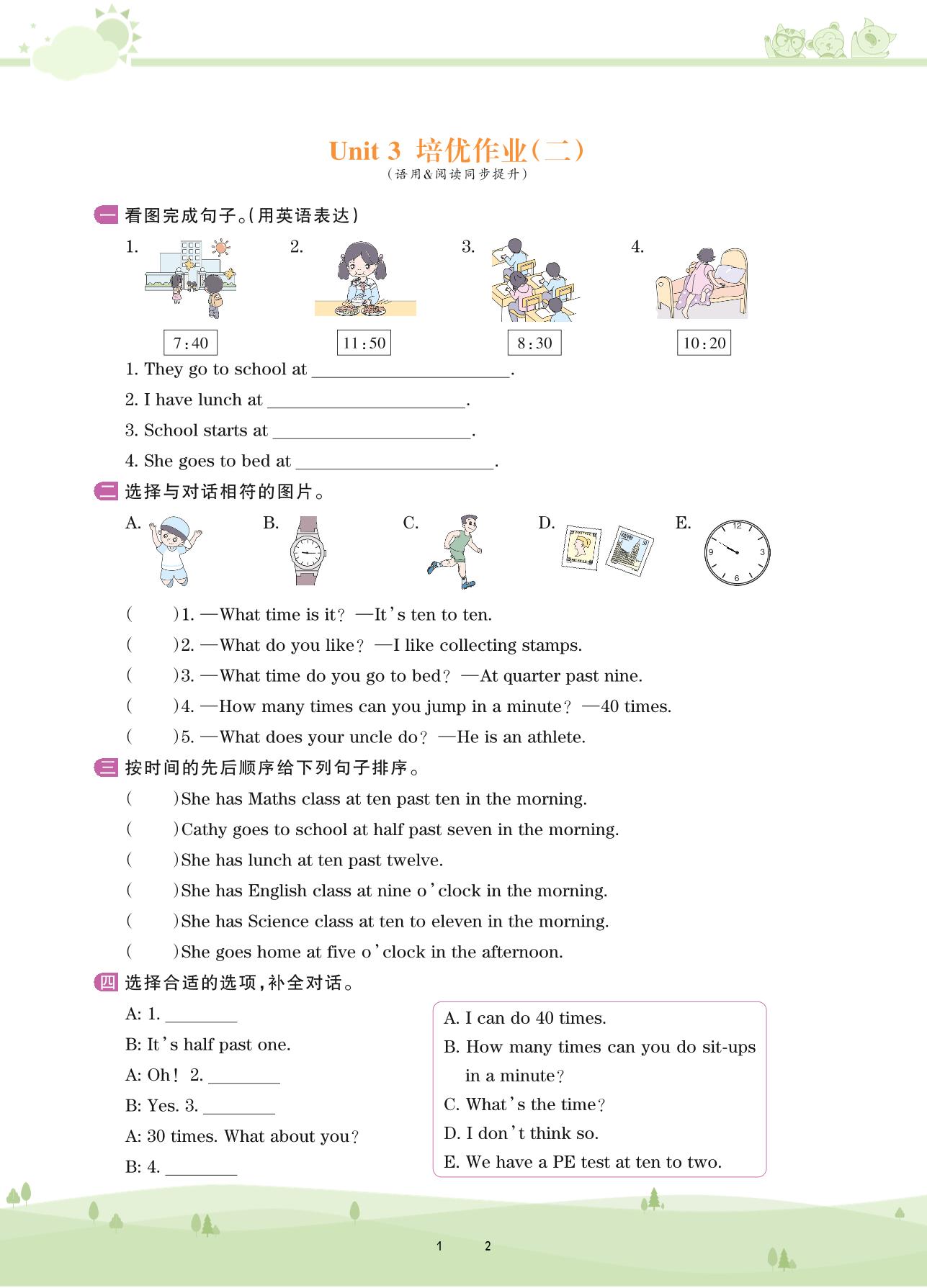 2020上册五年级英语剑桥版 Unit 3 培优作业(二)