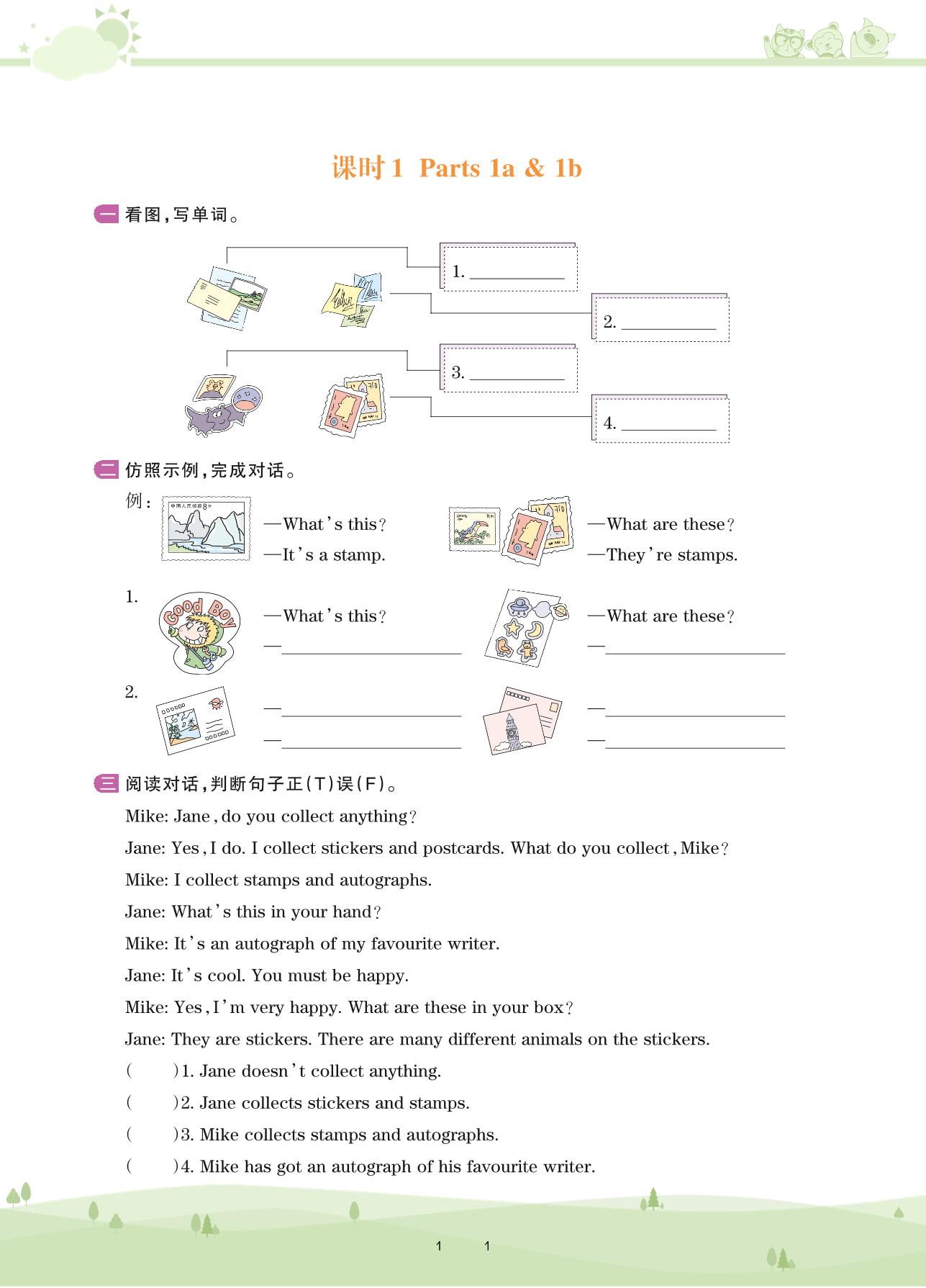 2020上册五年级英语剑桥版 Unit 4 What do you collect?——课时1 Parts 1a & 1b