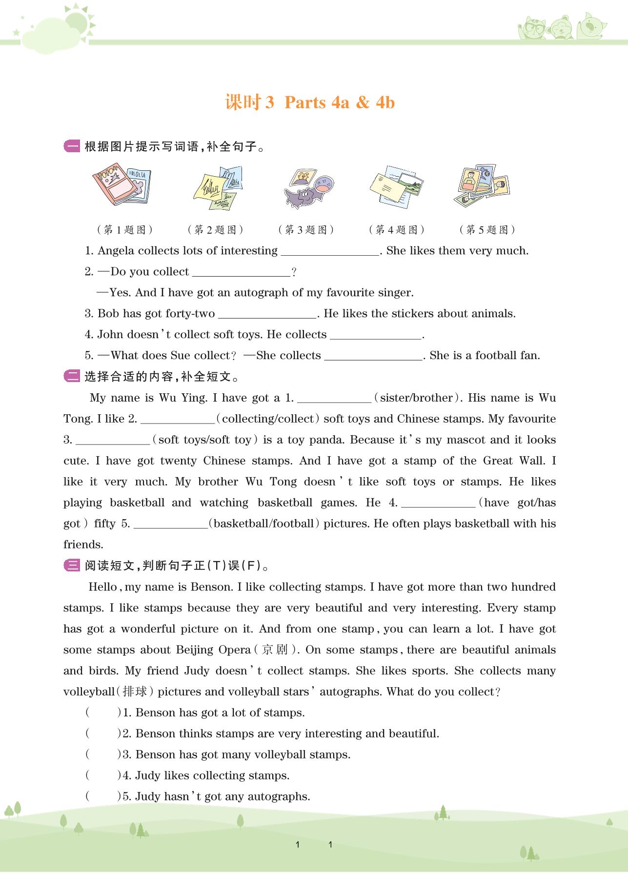 2020上册五年级英语剑桥版 Unit 4 What do you collect?——课时3 Parts 4a & 4b