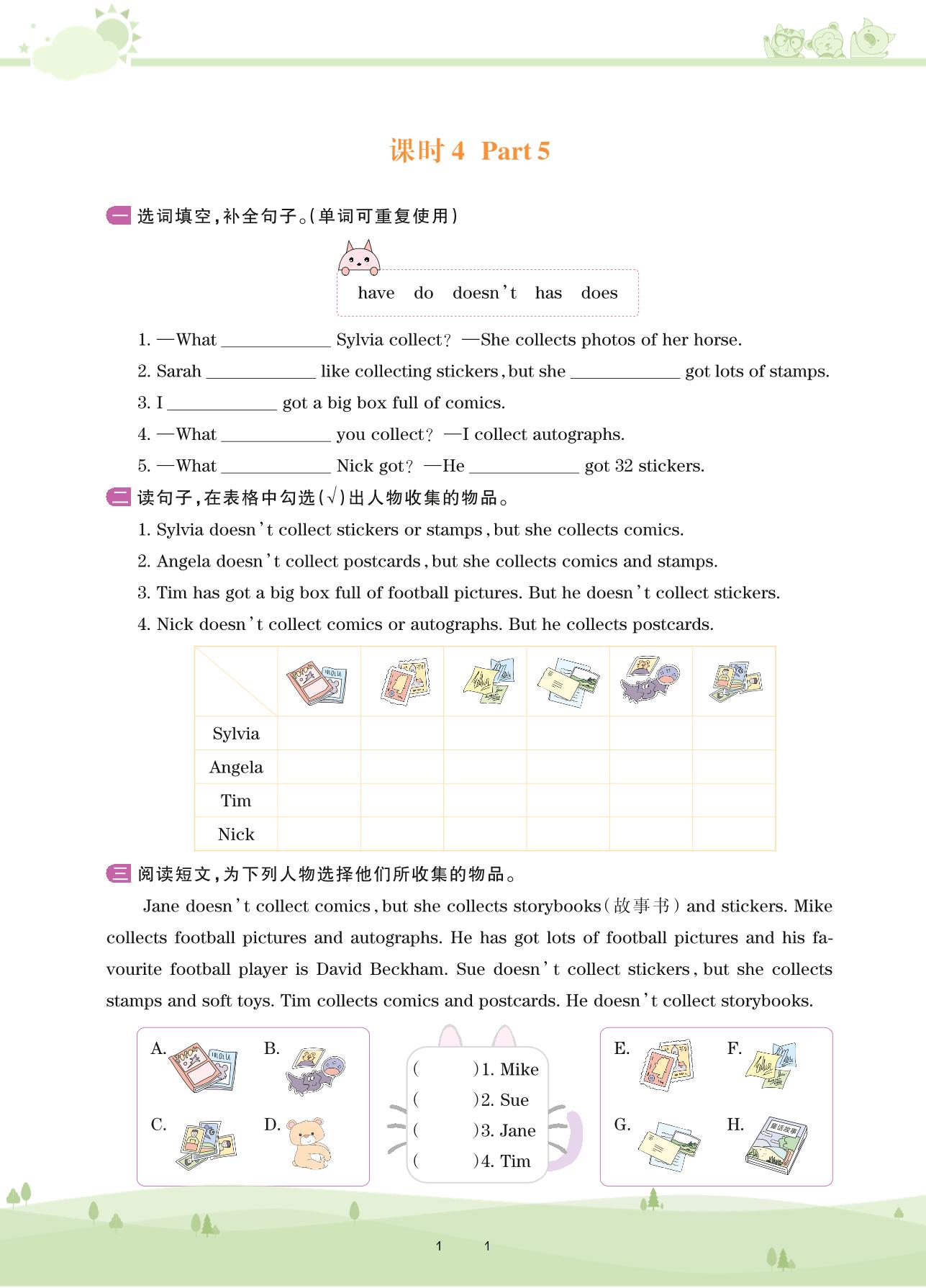 2020上册五年级英语剑桥版 Unit 4 What do you collect?——课时4 Part 5