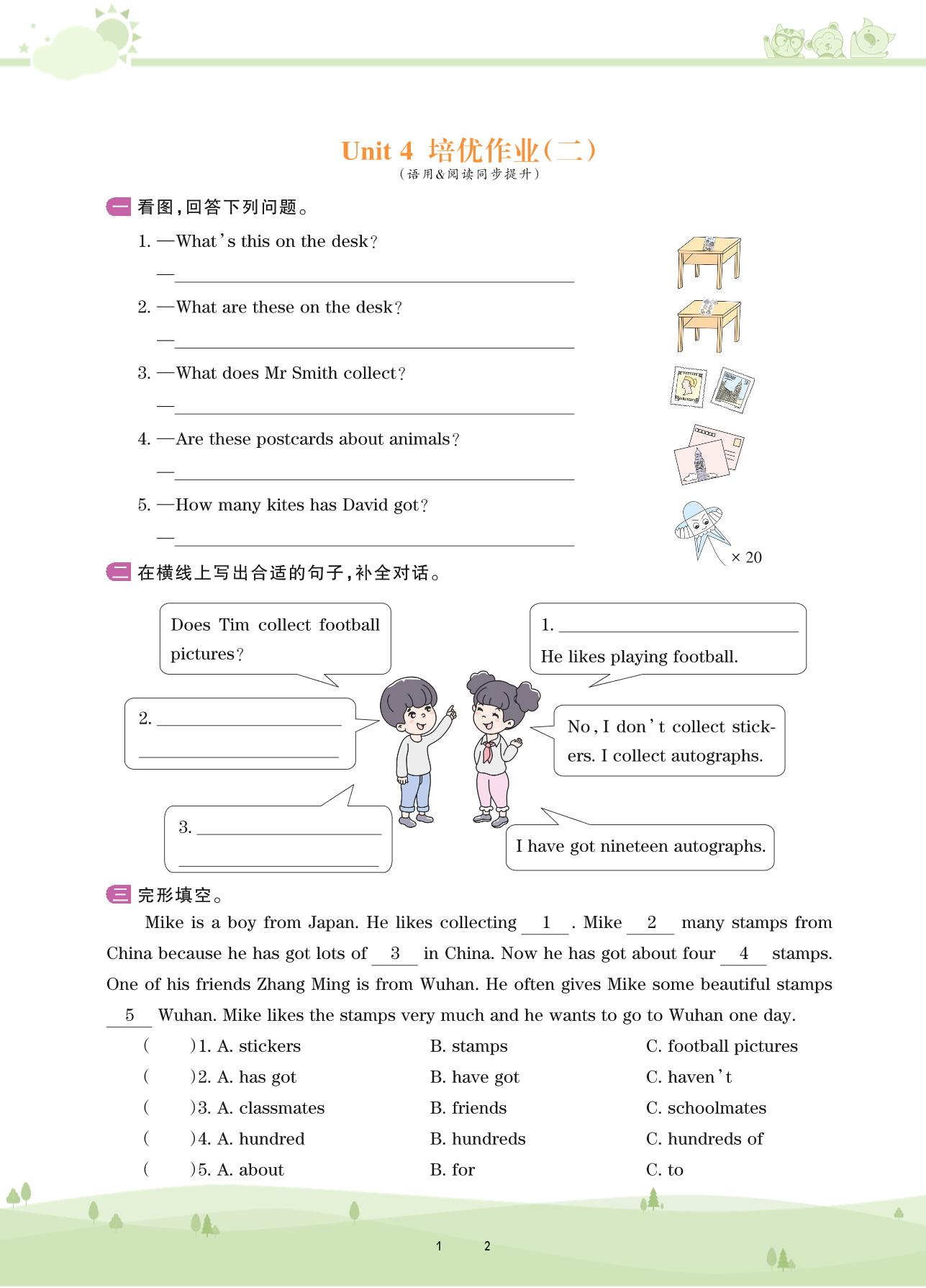 2020上册五年级英语剑桥版 Unit 4 培优作业(二)