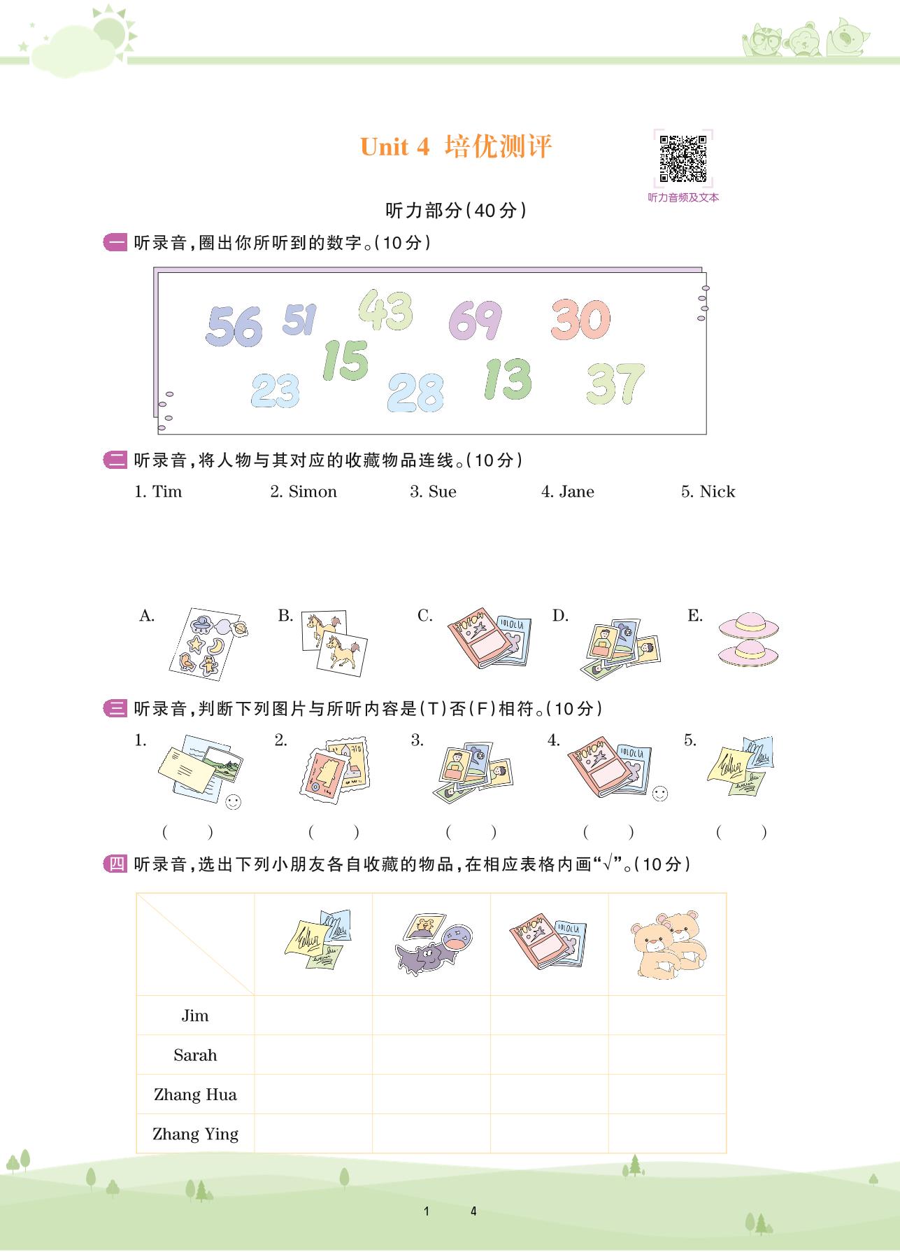 2020上册五年级英语剑桥版 Unit 4 培优测评