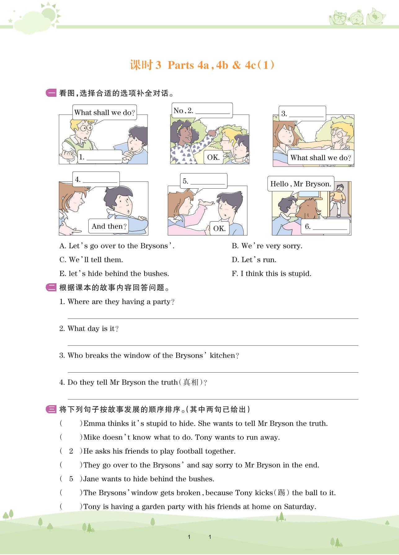 2020上册五年级英语剑桥版 Unit 5 A party——课时3 Parts 4a,4b & 4c(1)