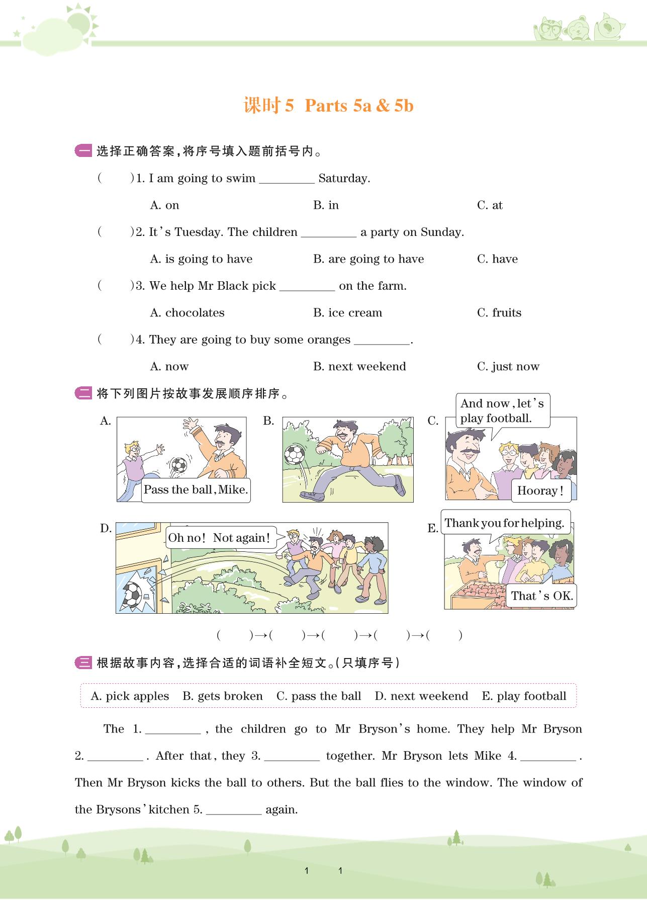 2020上册五年级英语剑桥版 Unit 5 A party——课时5 Parts 5a & 5b