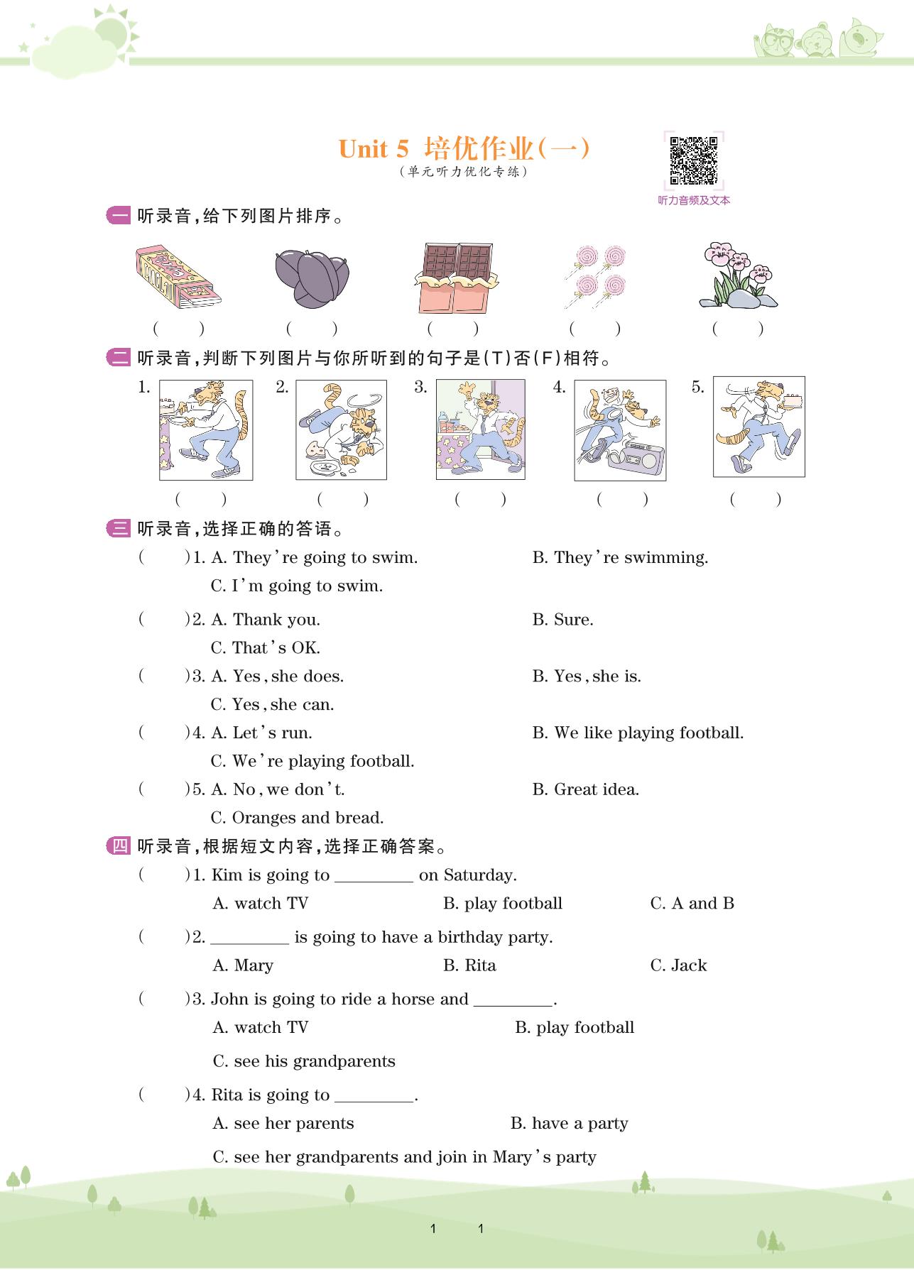 2020上册五年级英语剑桥版 Unit 5 培优作业(一)