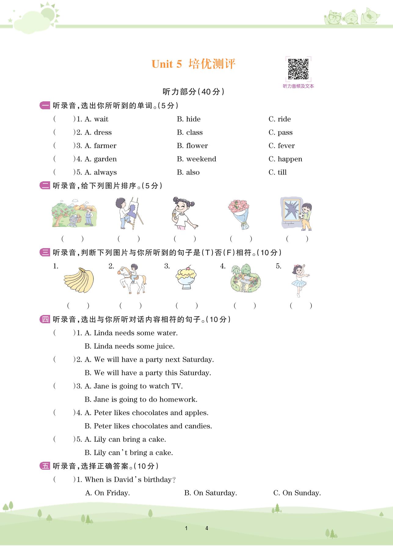 2020上册五年级英语剑桥版 Unit 5 培优测评