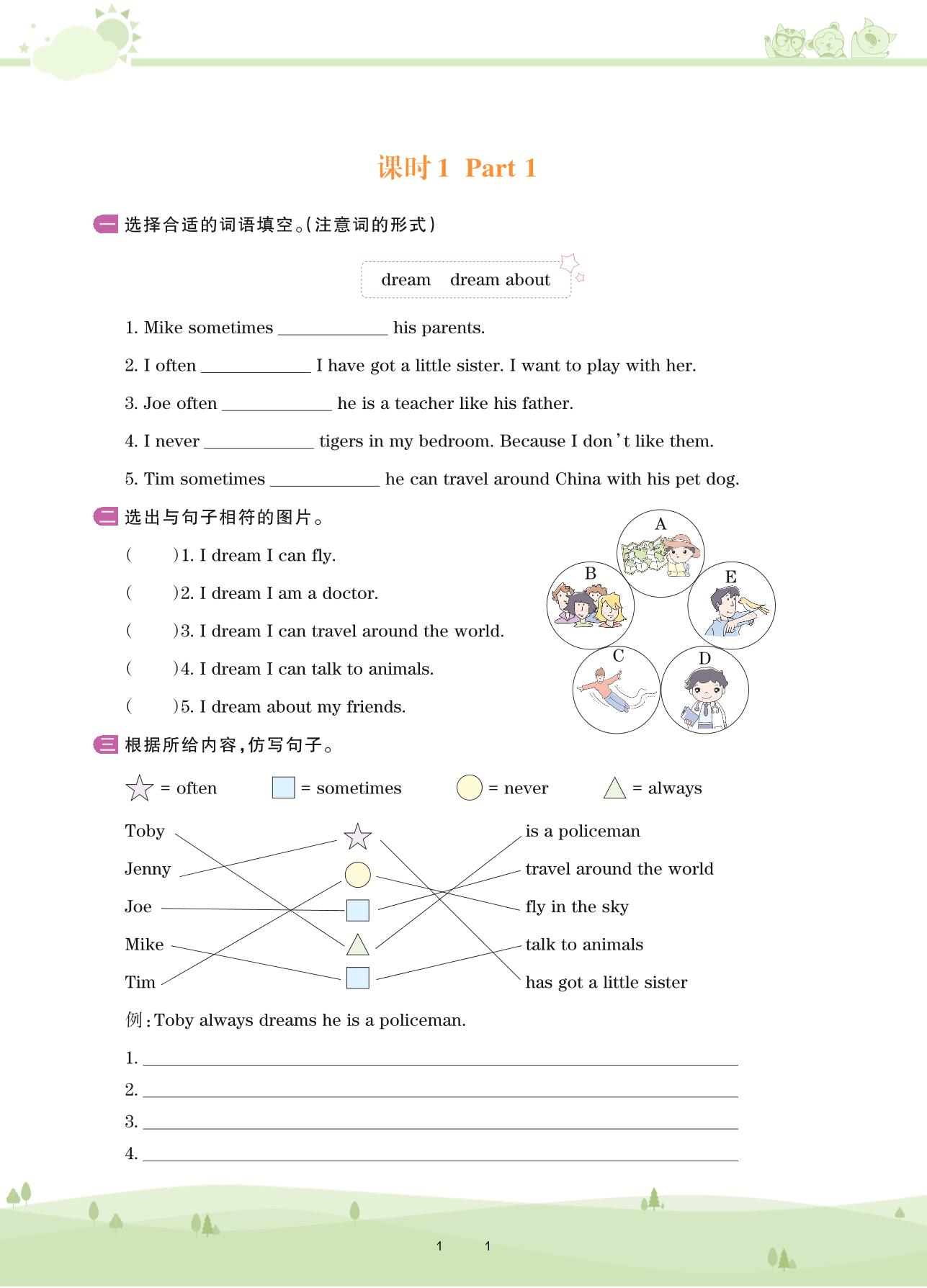 2020上册五年级英语剑桥版 Unit 6 Dreams——课时1 Part 1