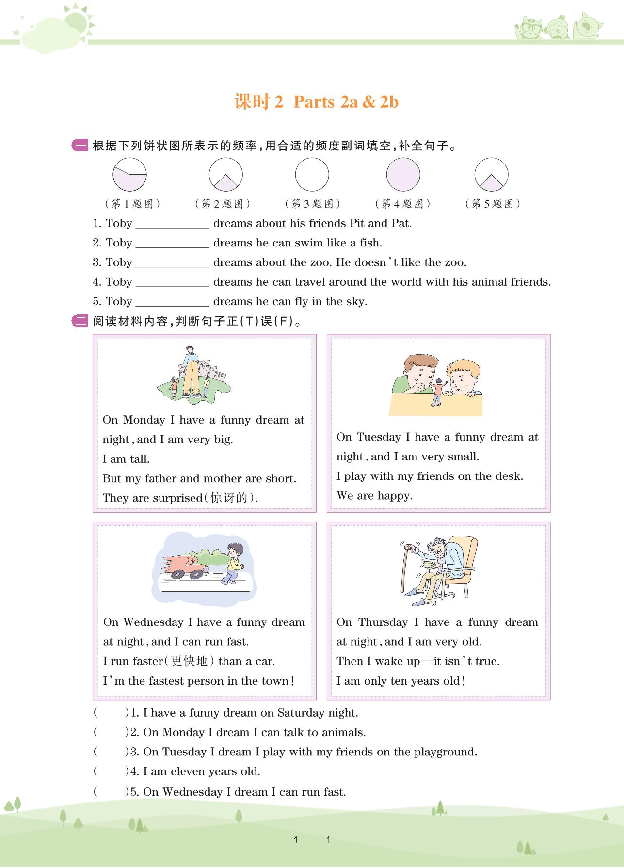 2020上册五年级英语剑桥版 Unit 6 Dreams——课时2 Parts 2a & 2b