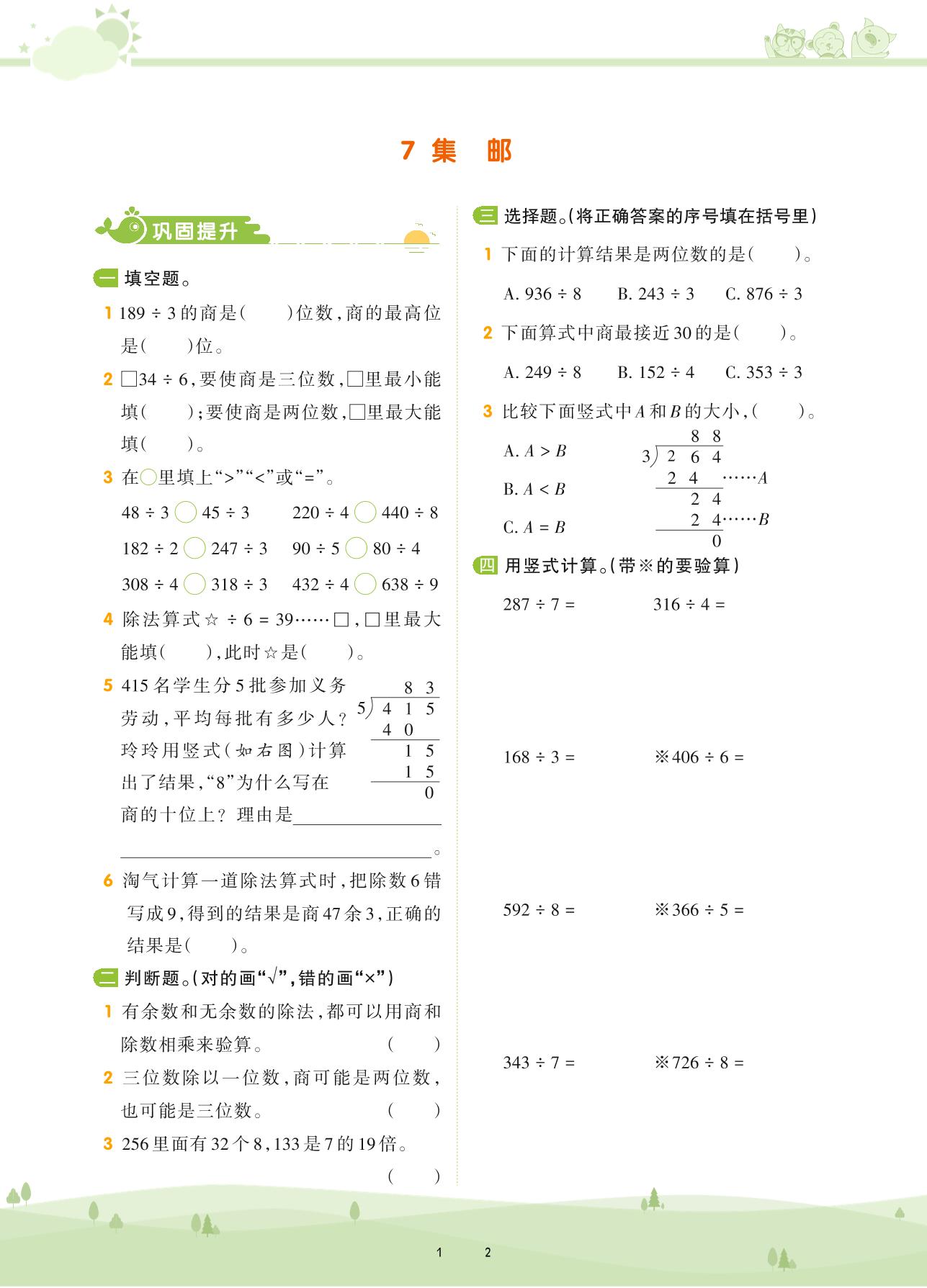 2021下册三年级数学北师版 第一单元 除 法——7 集邮