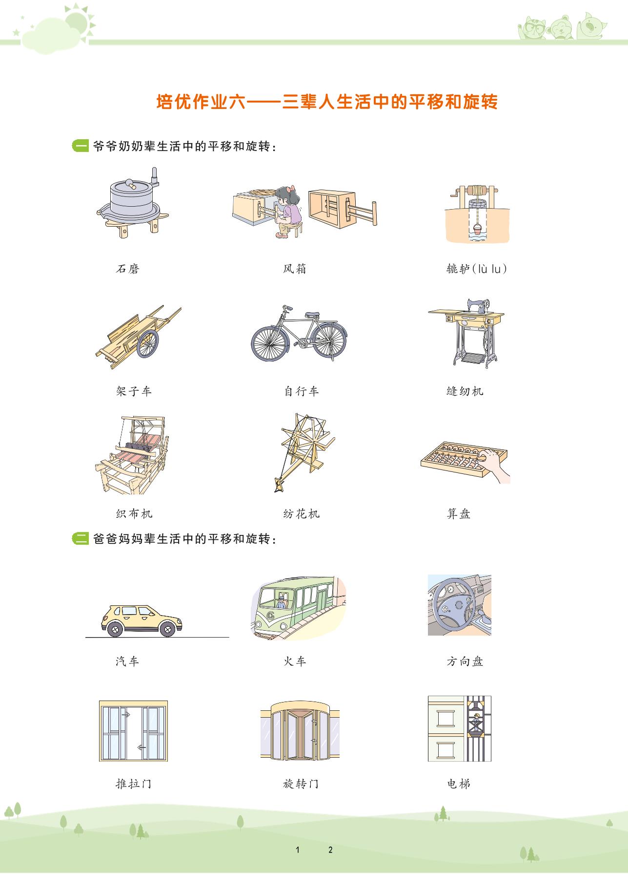 2021下册三年级数学北师版 第二单元 图形的运动——培优作业六 三辈人生活中的平移和旋转