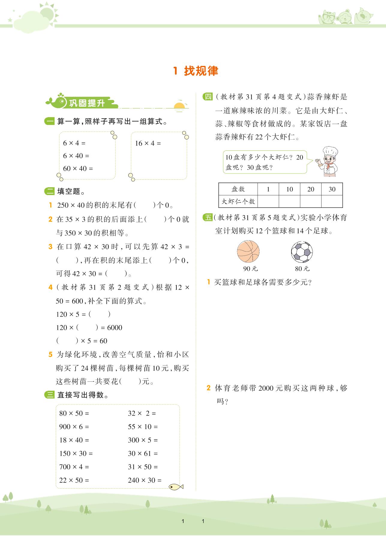 2021下册三年级数学北师版 第三单元 乘 法——1 找规律