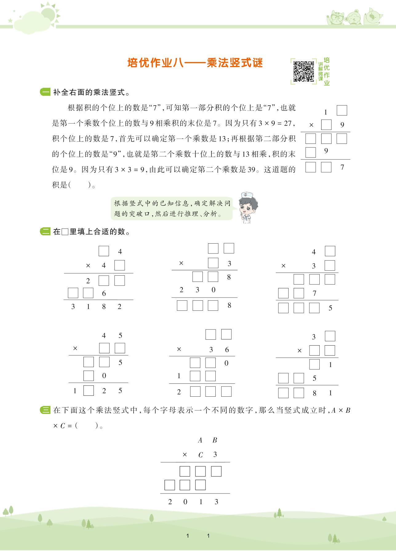 2021下册三年级数学北师版 第三单元 乘 法——培优作业八 乘法竖式谜