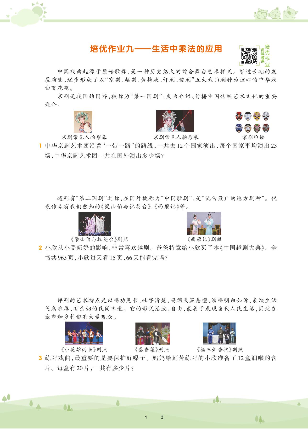 2021下册三年级数学北师版 第三单元 乘 法——培优作业九 生活中乘法的应用