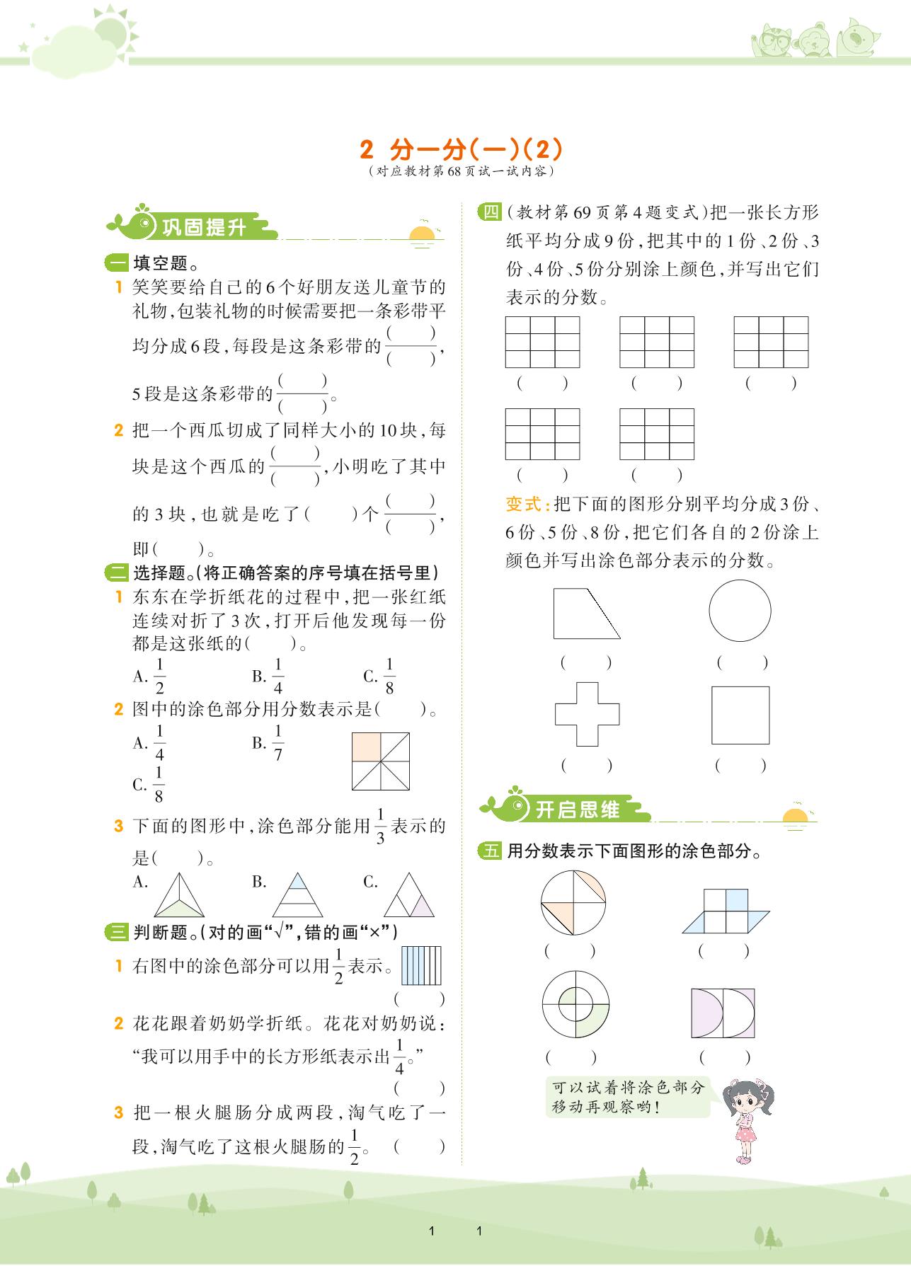 2021下册三年级数学北师版 第六单元 认识分数——2 分一分(一)(2)